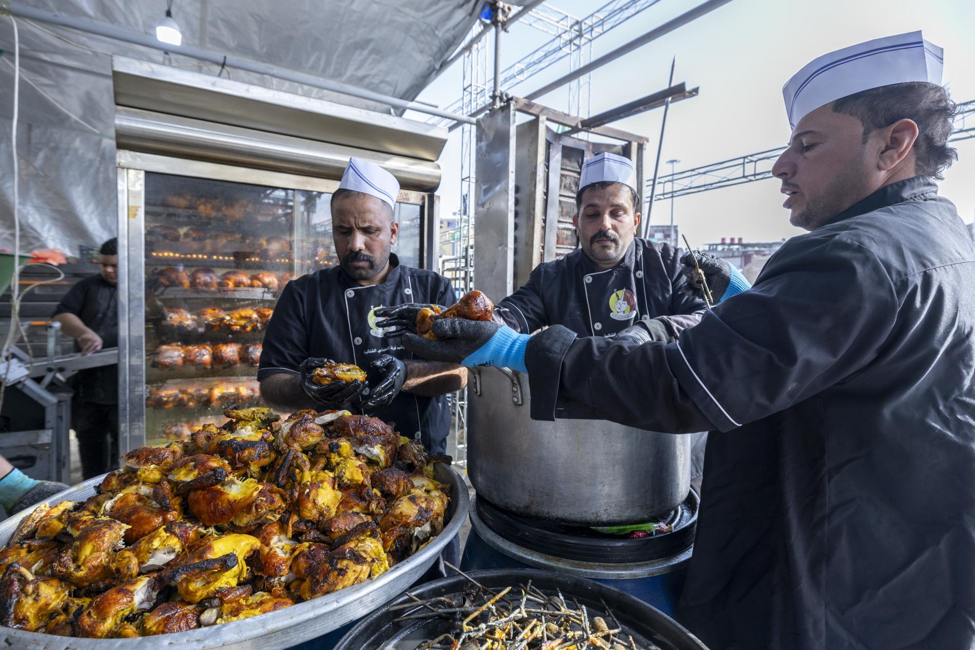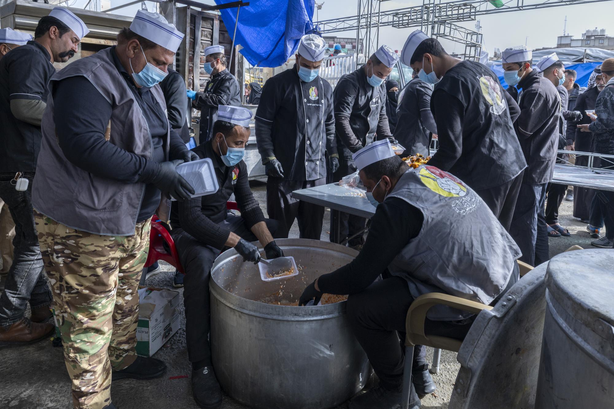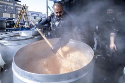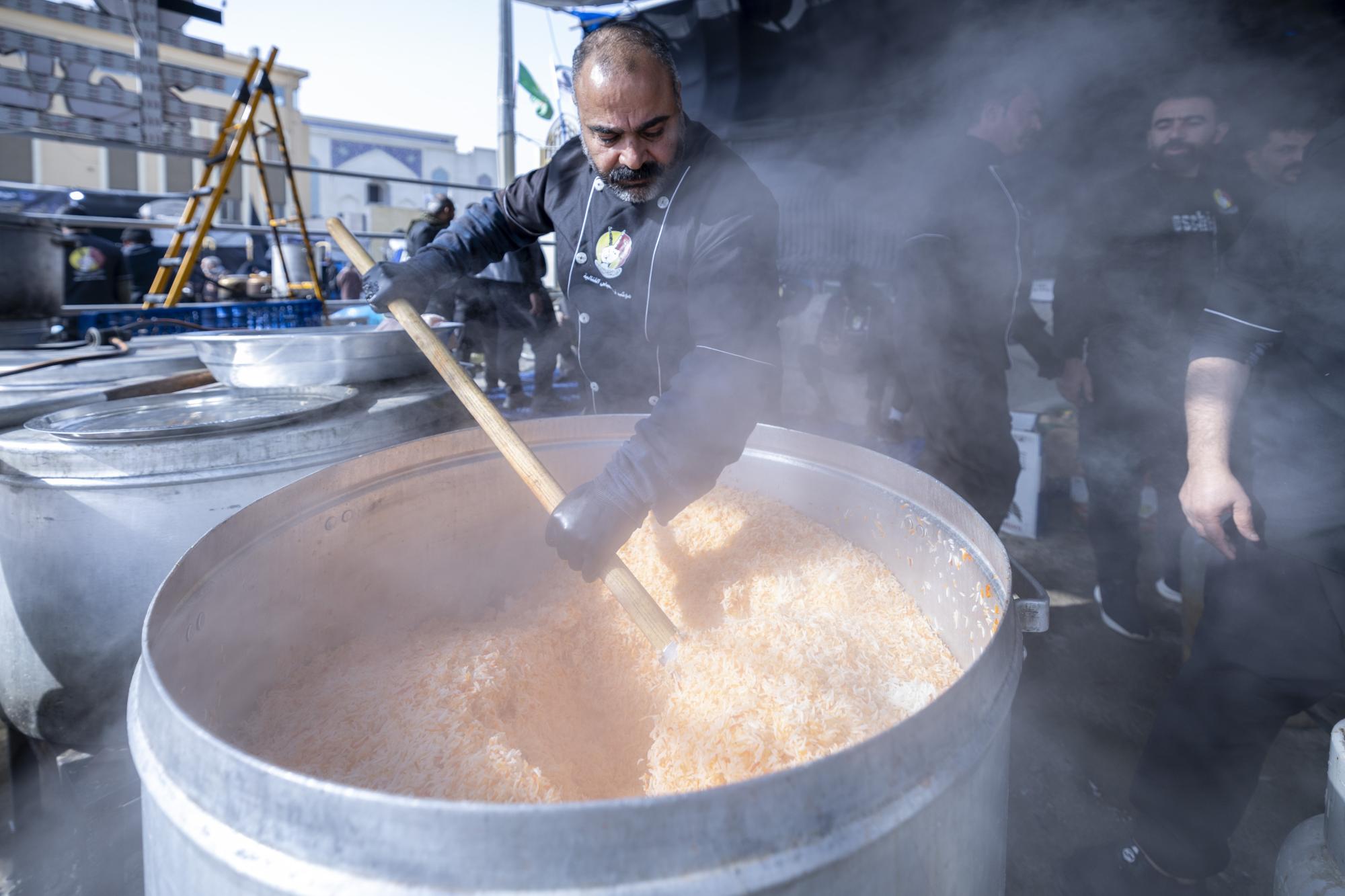 Il a ajouté : « La procession distribue quotidiennement 15 000 repas principaux, ainsi que des collations, aux pèlerins en deuil. » Il a également précisé que « la brigade a installé un four spécial pour la production de pain, qui permet de fabriquer environ 20 000 pains par jour. »
