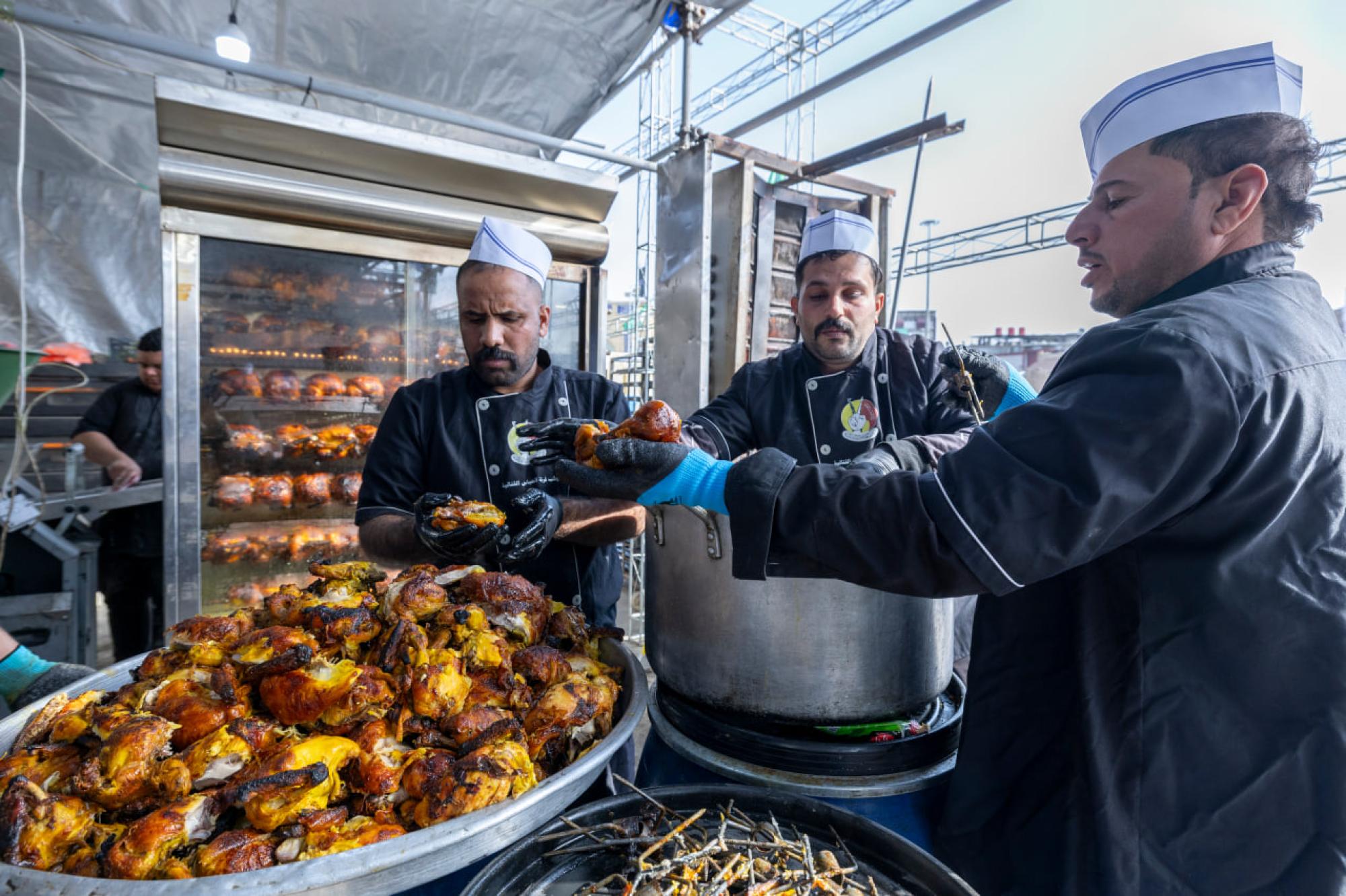 Il a ajouté : « Le cortège a distribué en moyenne 15 000 repas principaux et complémentaires par jour aux pèlerins commémorant cette triste occasion, et plus de 20 000 repas par jour au plus fort du pèlerinage. » Il a également noté que « la brigade a équipé un four spécial pour la production de pain, qui produit environ 20 000 miches par jour ».