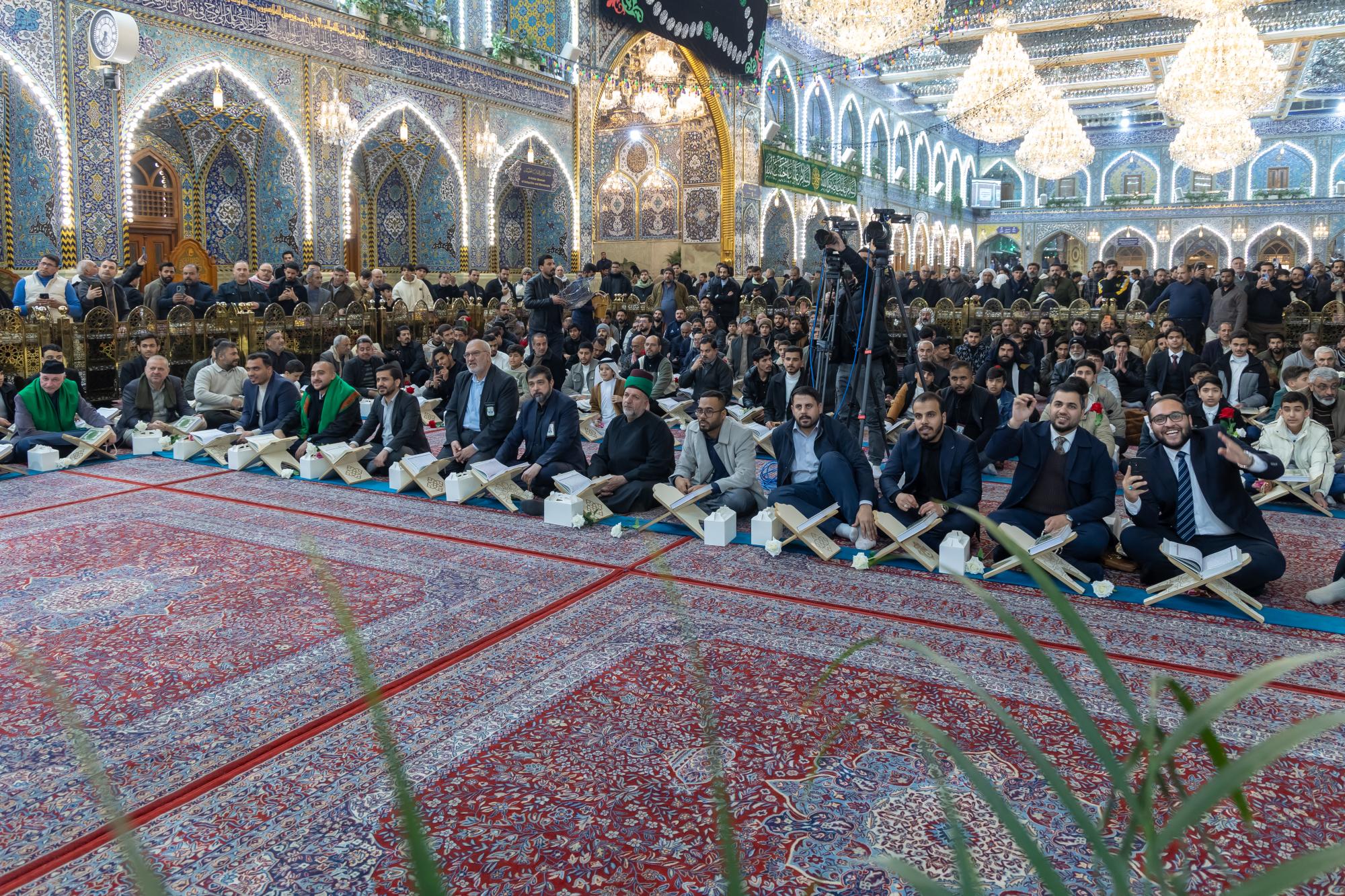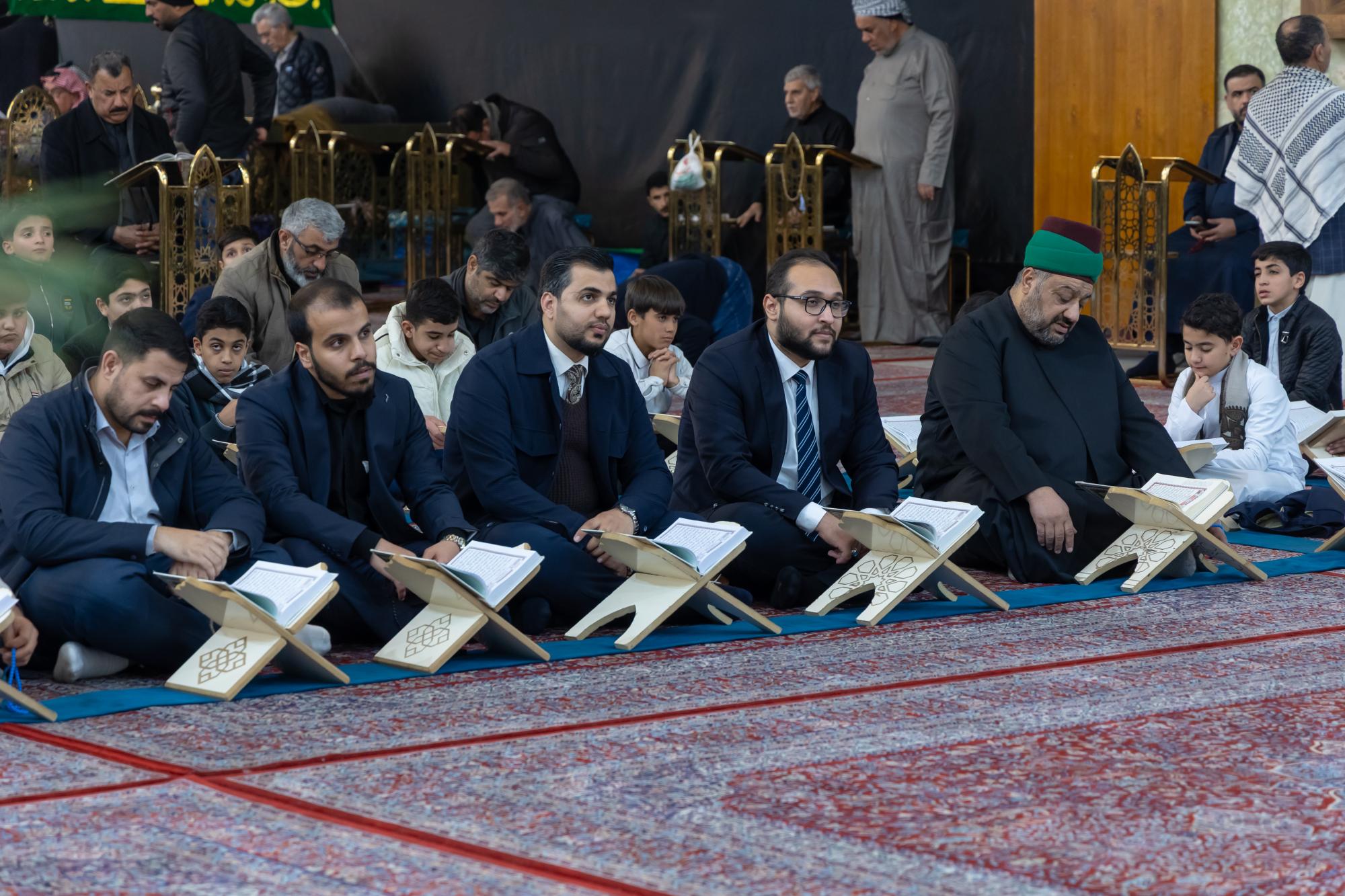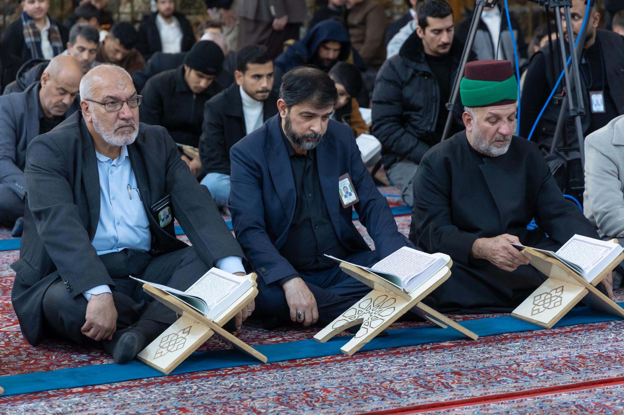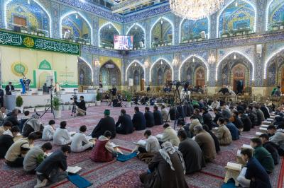 The ceremony was held in the courtyard of the shrine of Aba al-Fadl al-Abbas (peace be upon him) with the presence of a delegation from the Quran Center at the Al-Mustafa (peace be upon him) Foundation for Guidance and Religious Awareness, and a large gathering of visitors.