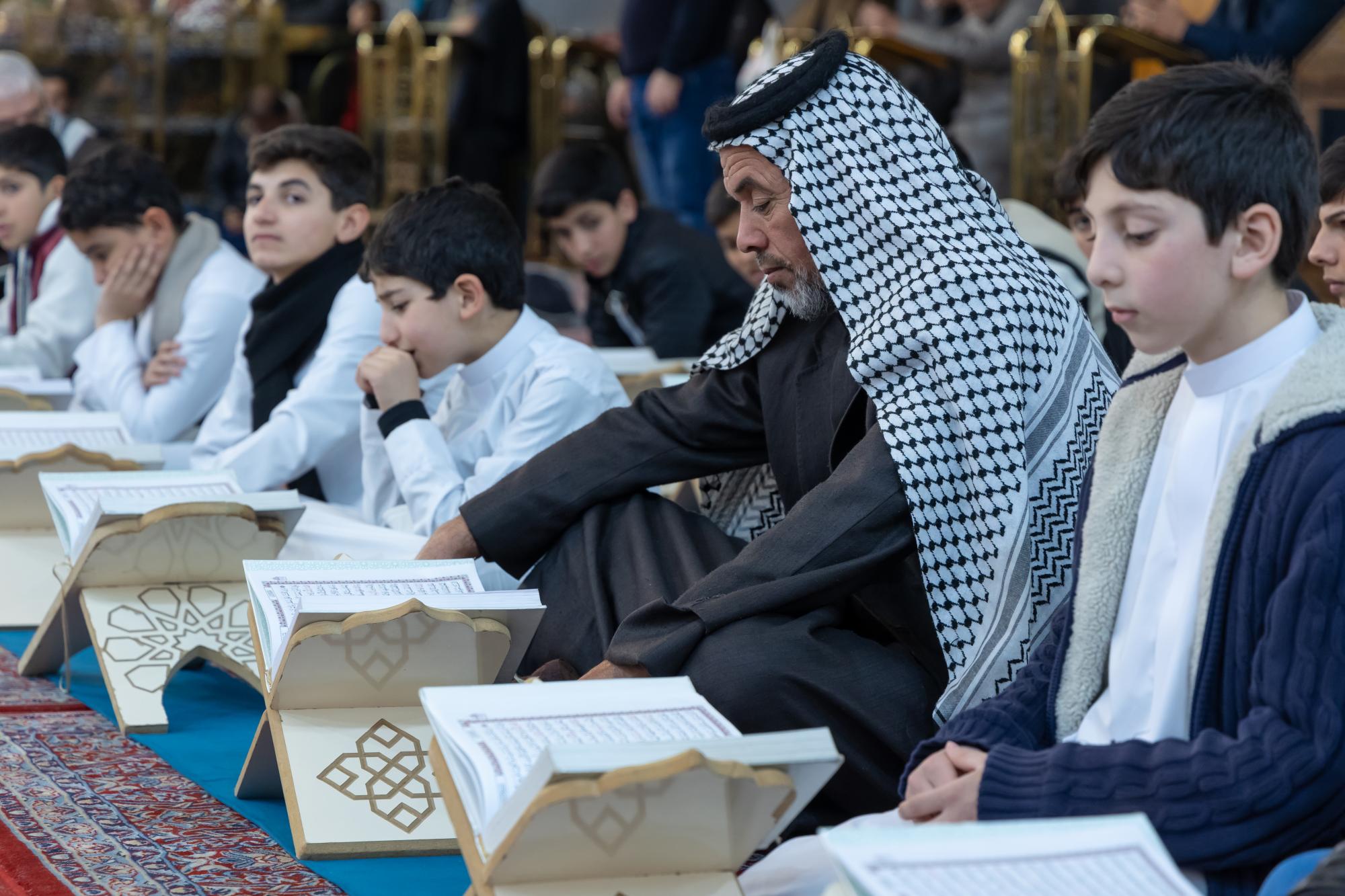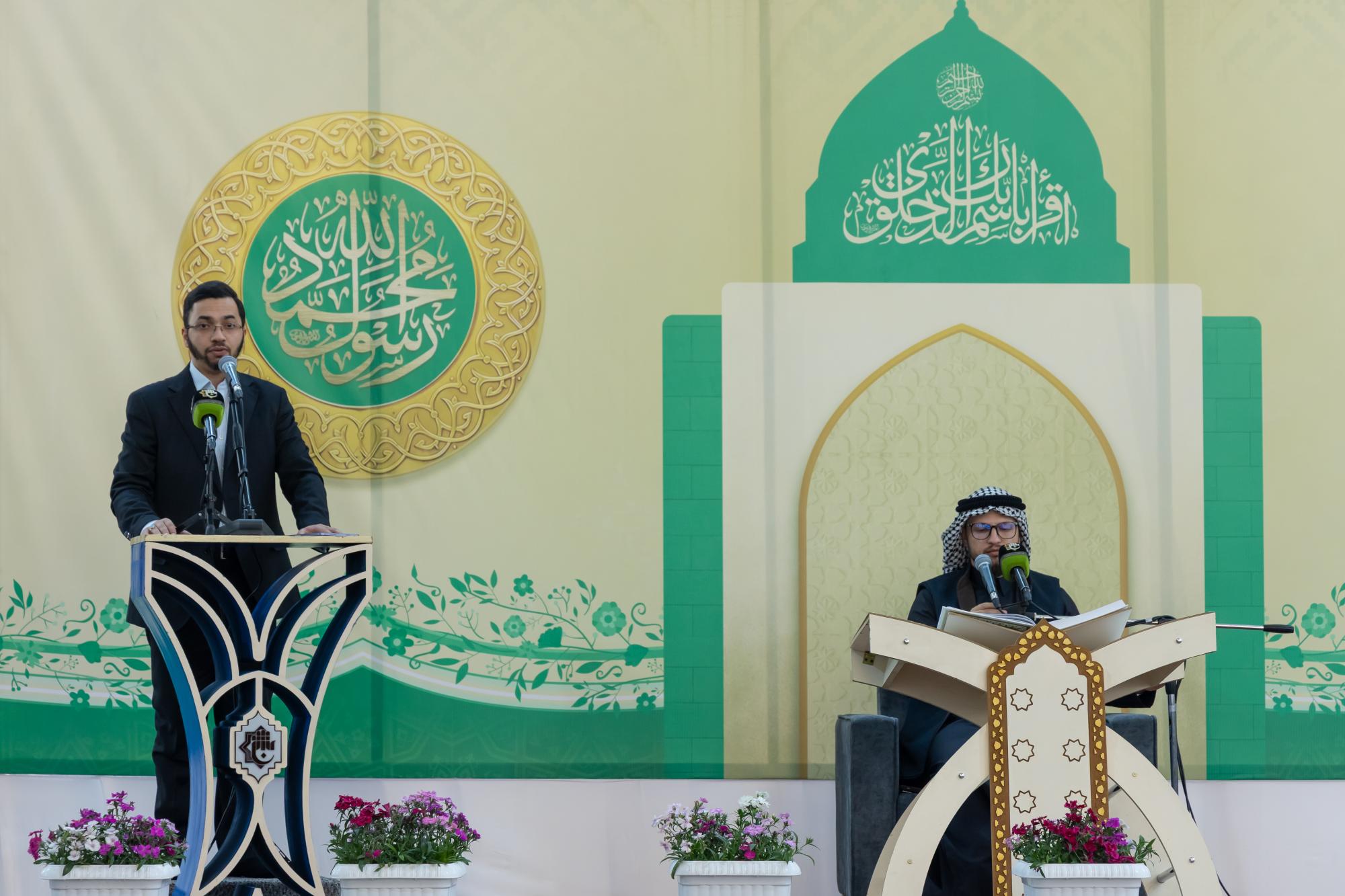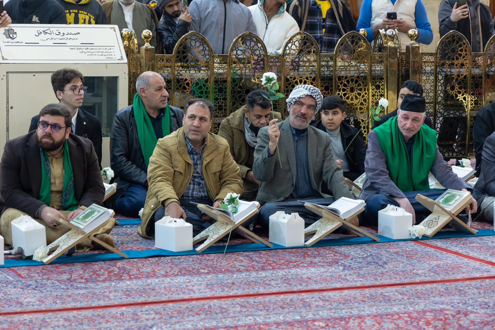 The ceremony was held in the courtyard of the shrine of Aba al-Fadl al-Abbas (peace be upon him) with the presence of a delegation from the Quran Center at the Al-Mustafa (peace be upon him) Foundation for Guidance and Religious Awareness, and a large gathering of visitors.