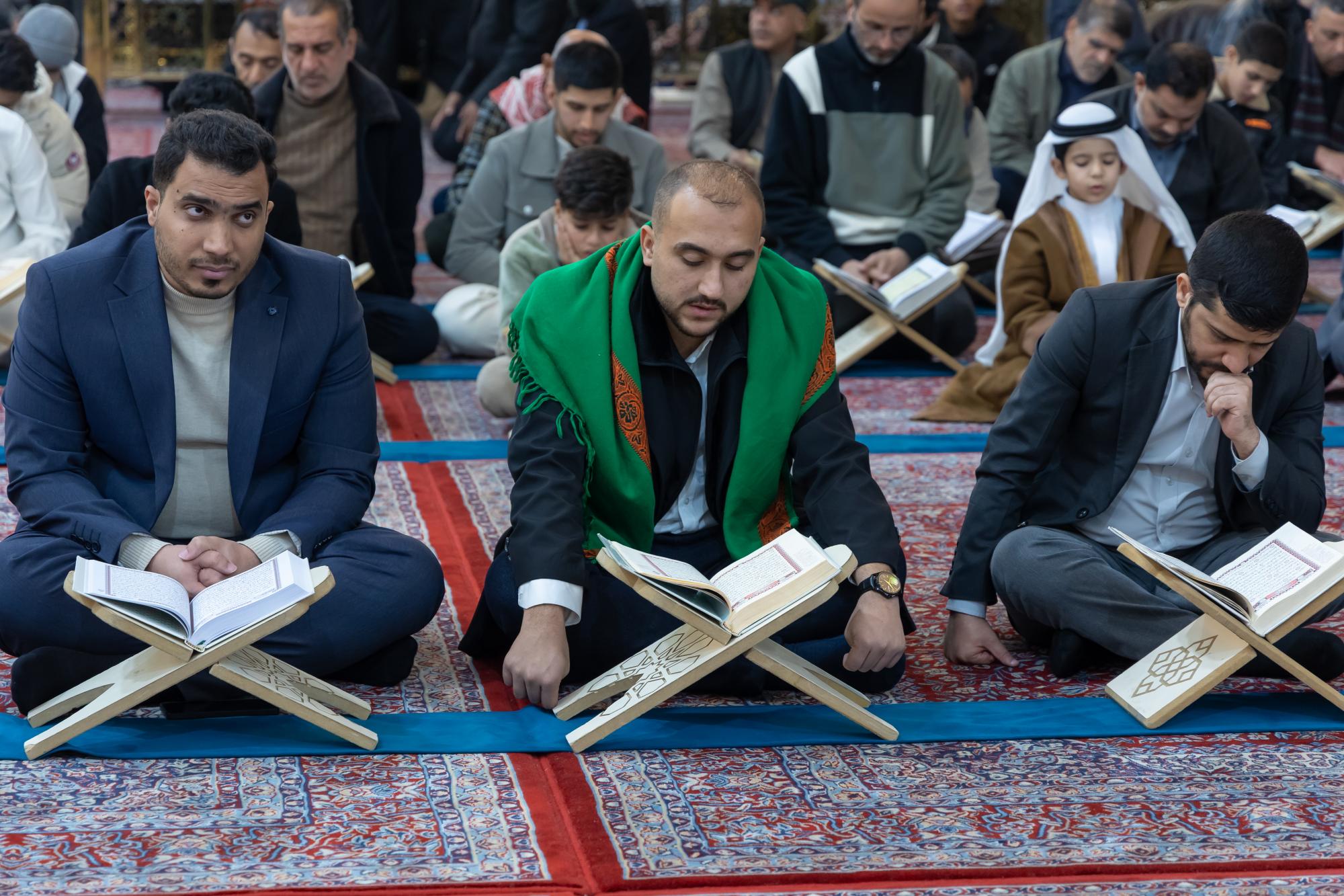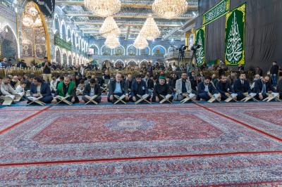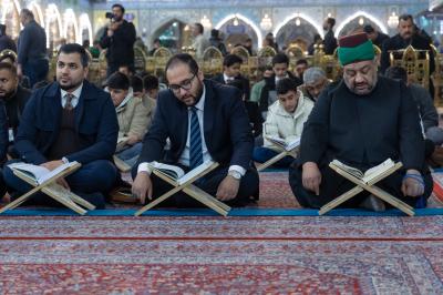 Dr. Mushtaq Al-Ali, a member of the Central Celebrations Committee at the holy shrine, said, "The gathering coincides with the occasion of the anniversary of the Prophet's mission and the National Day of the Holy Quran. It was attended by a group of reciters from the holy shrines to commemorate this blessed occasion and contribute to the dissemination of Quranic culture."
