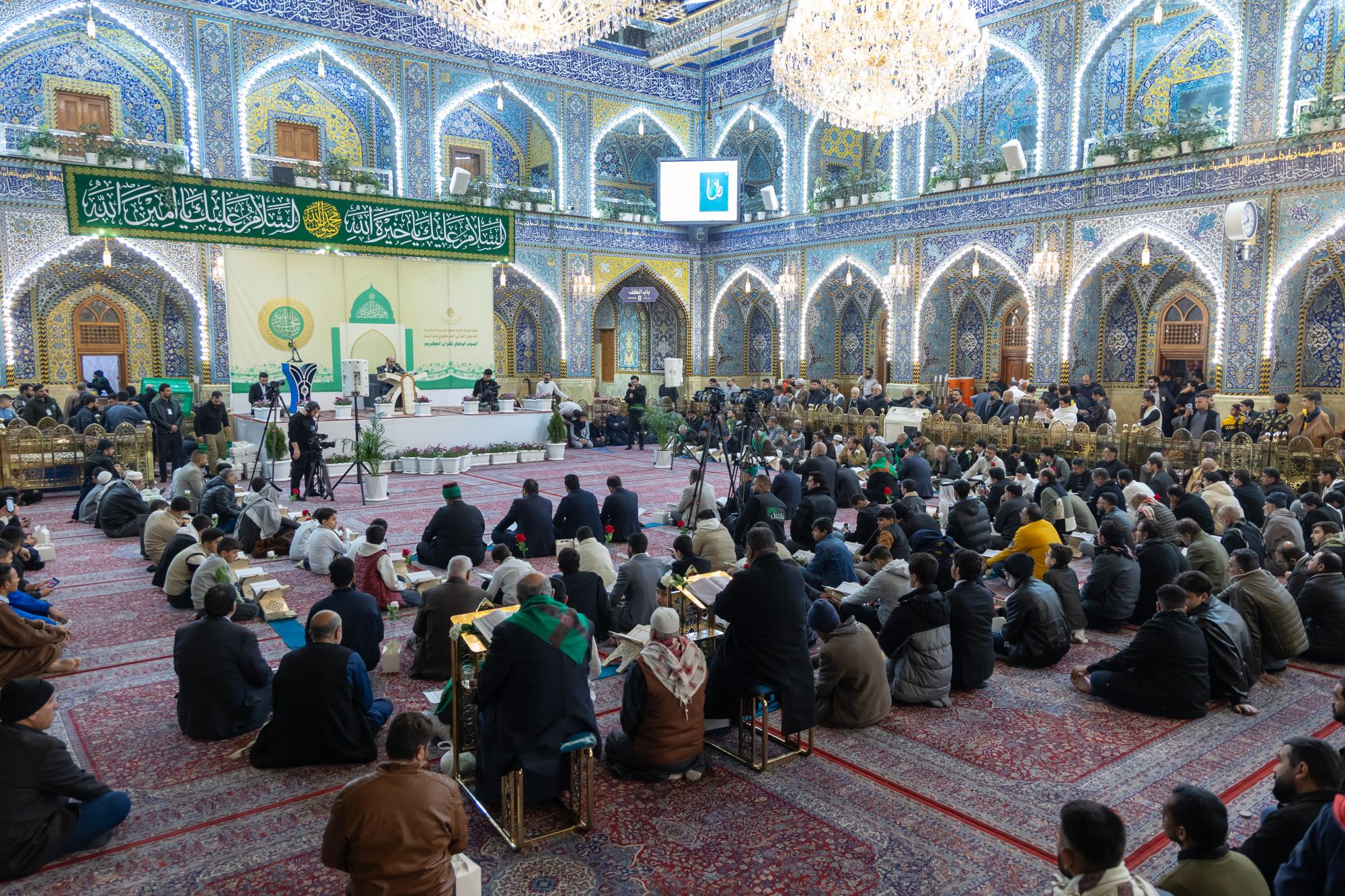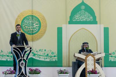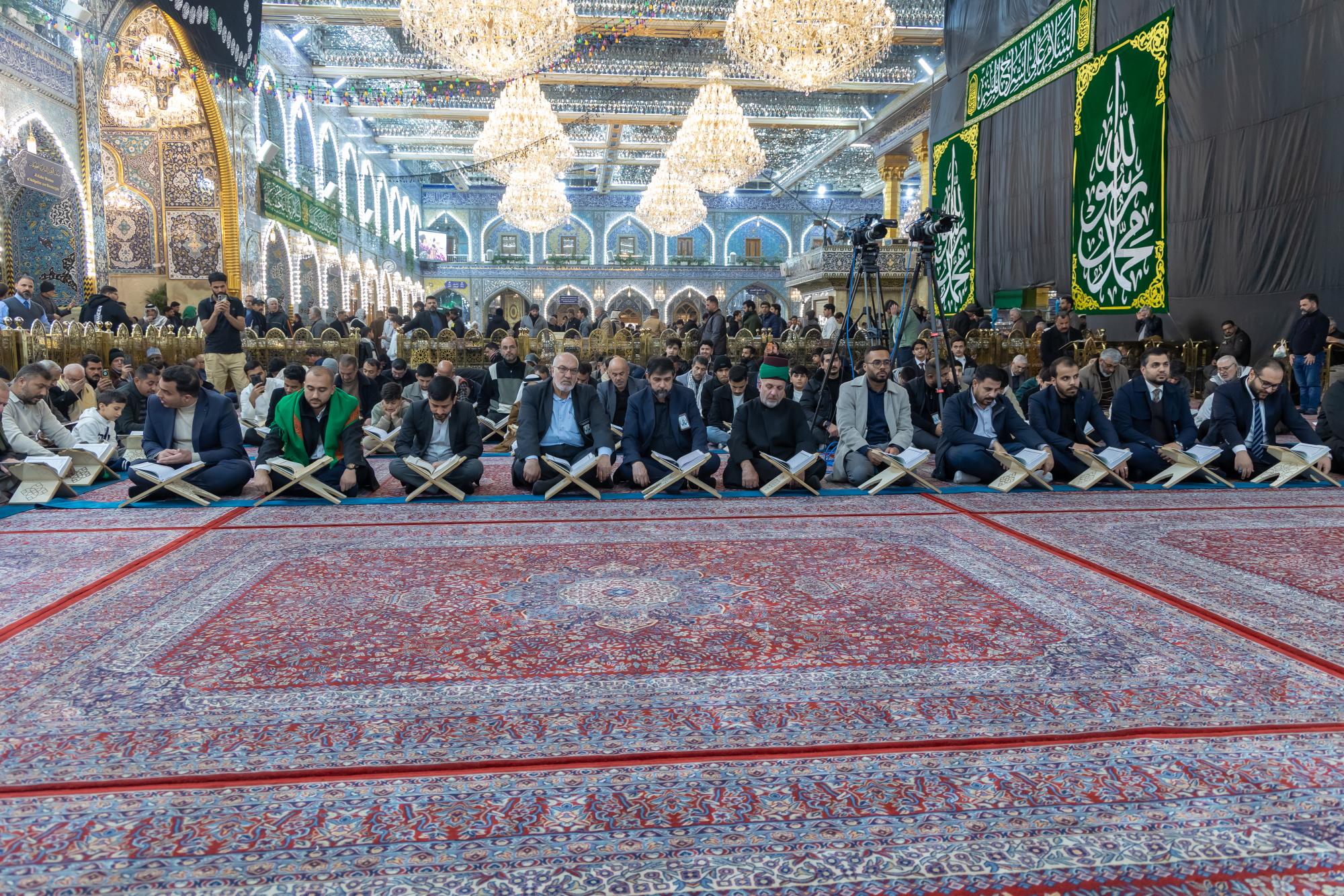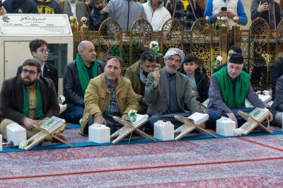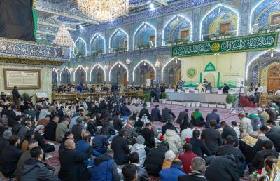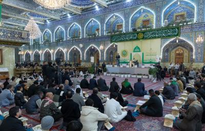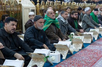 The gathering witnessed blessed Quranic recitations presented by the reader of the Imam Ali's (p) Holy Shrine, Karim Mansouri, and the readers of the Holy Shrines of Imam al-Hussayn and al-Abbas (peace be upon them), Osama Al-Karbalaei and Muhammad Redha Al-Zubaidi.