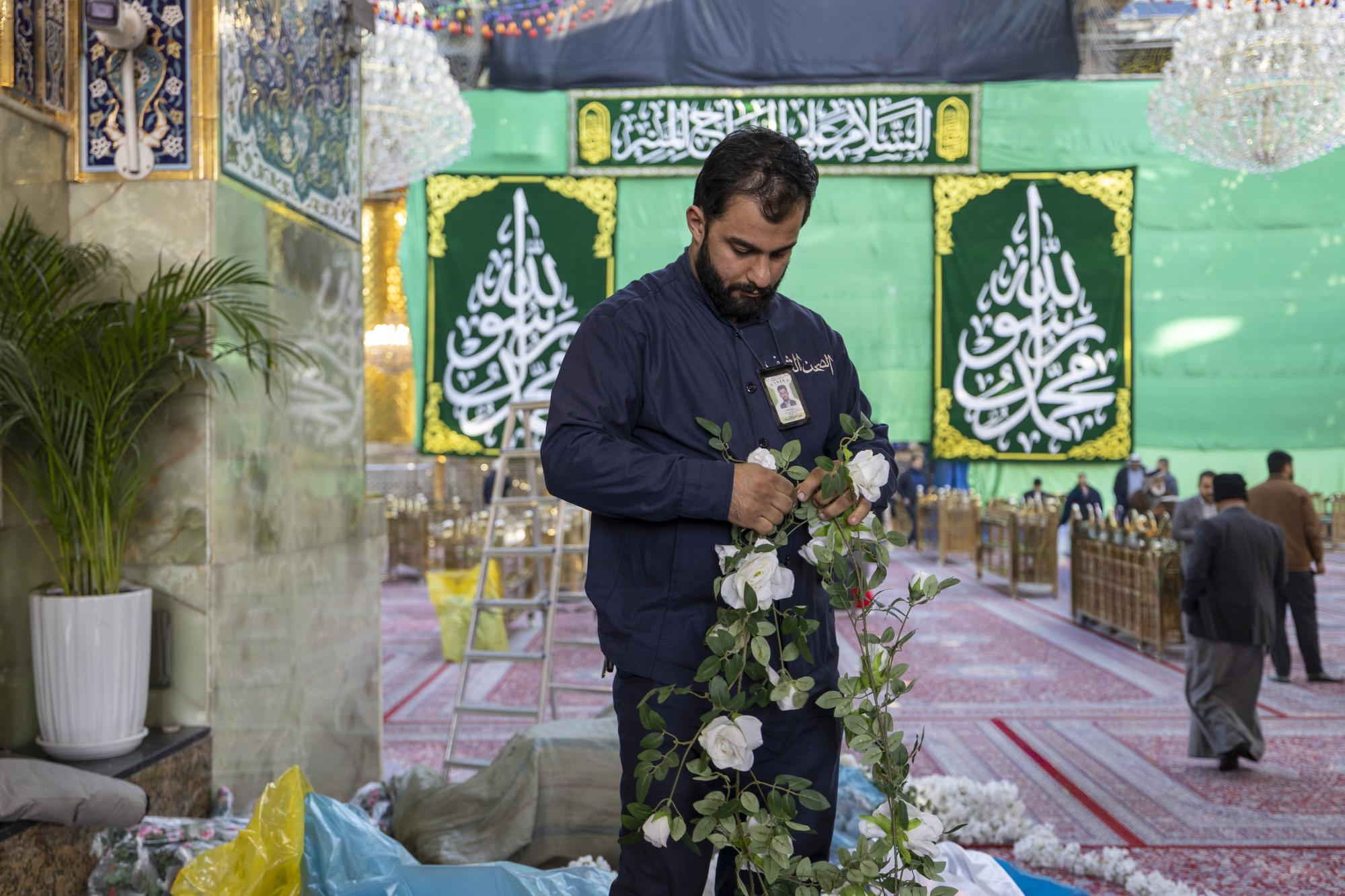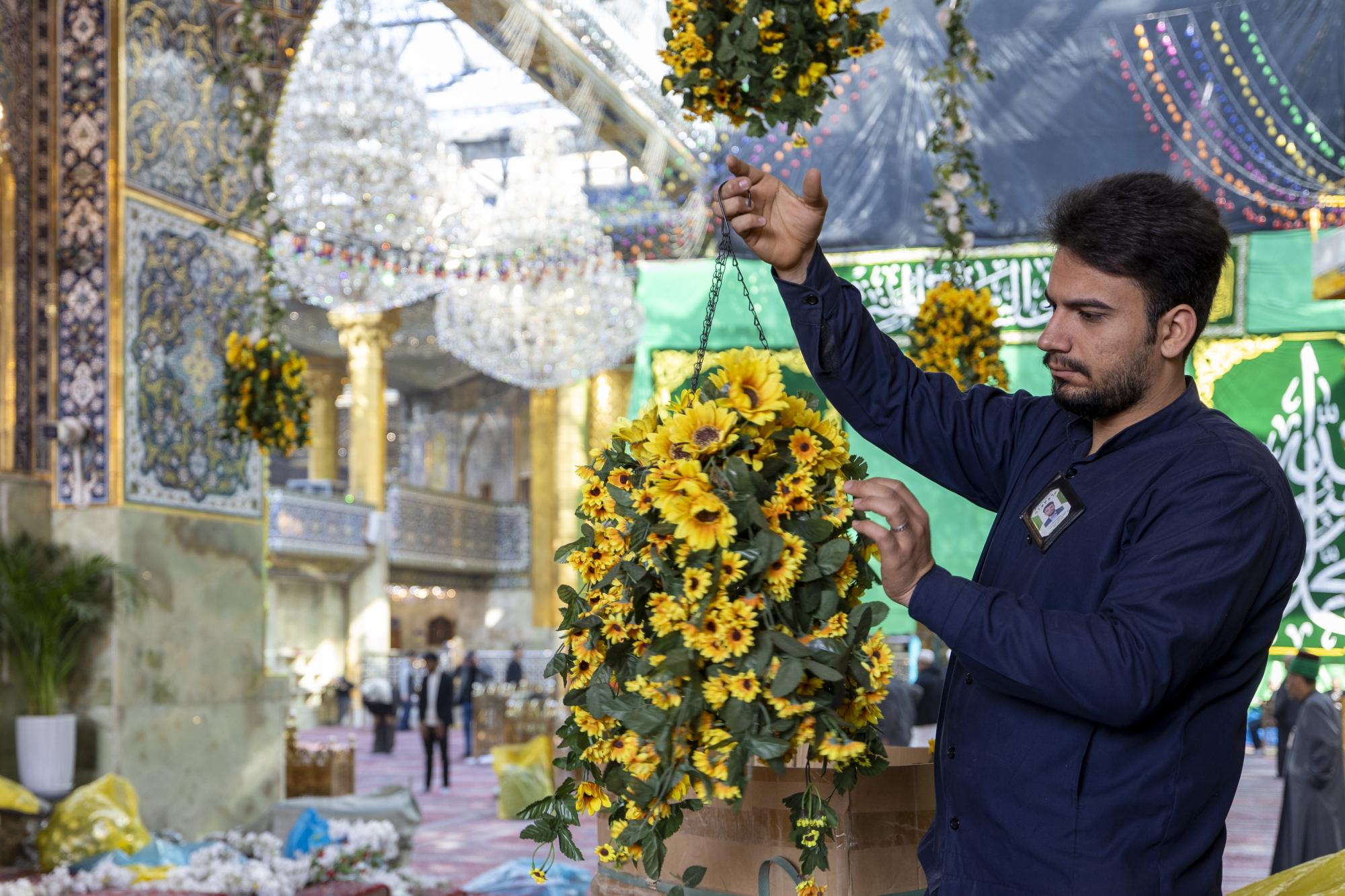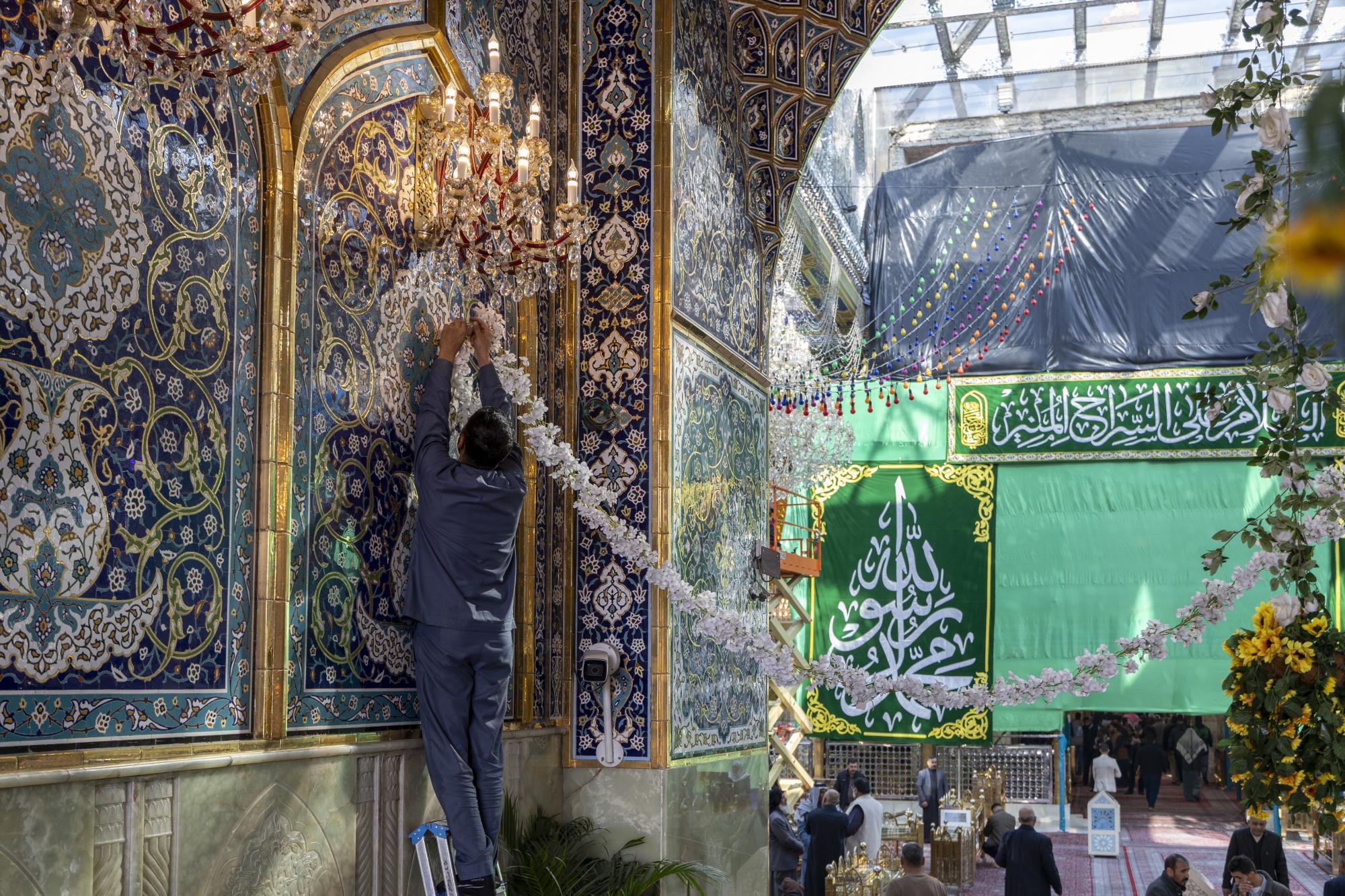 ونشرت ملاكت العتبة المقدسة الزهور والزينة ولافتات خُطّت عليها عبارات تهنئة داخل صحن مرقد أبي الفضل العباس (عليه السلام) ومداخله وبين الحرمين الشريفين؛ بالتزامن مع ذكرى الولادات الشعبانية.