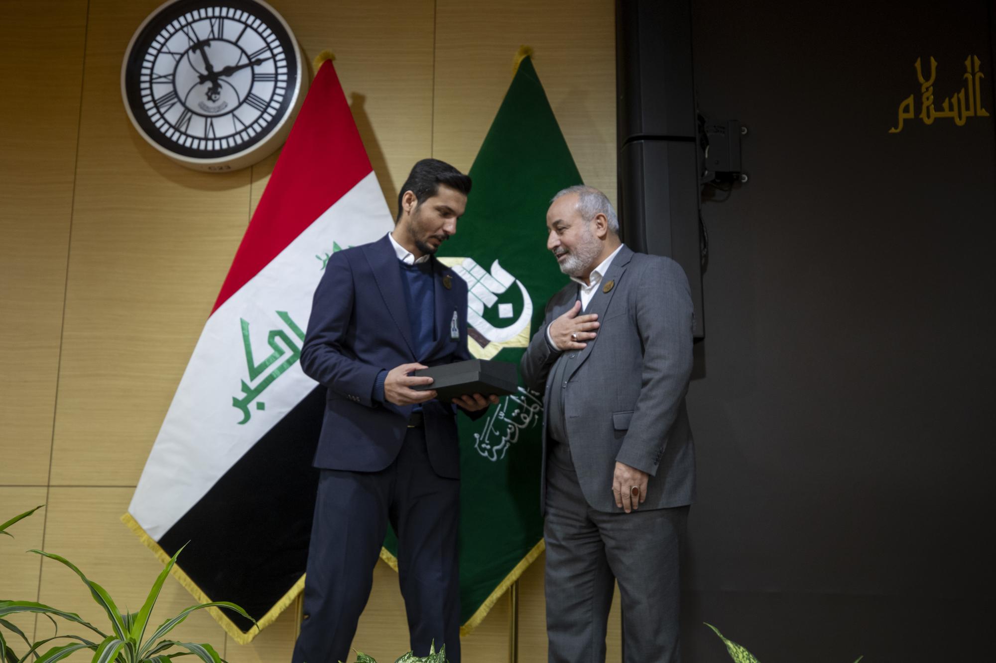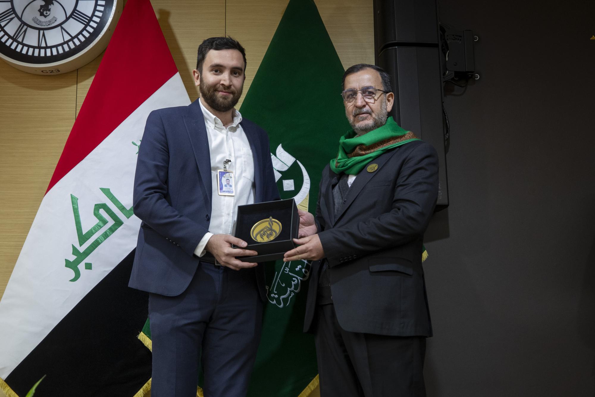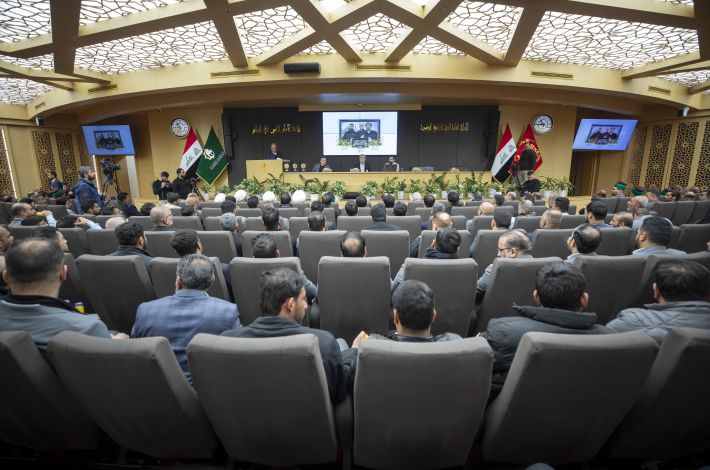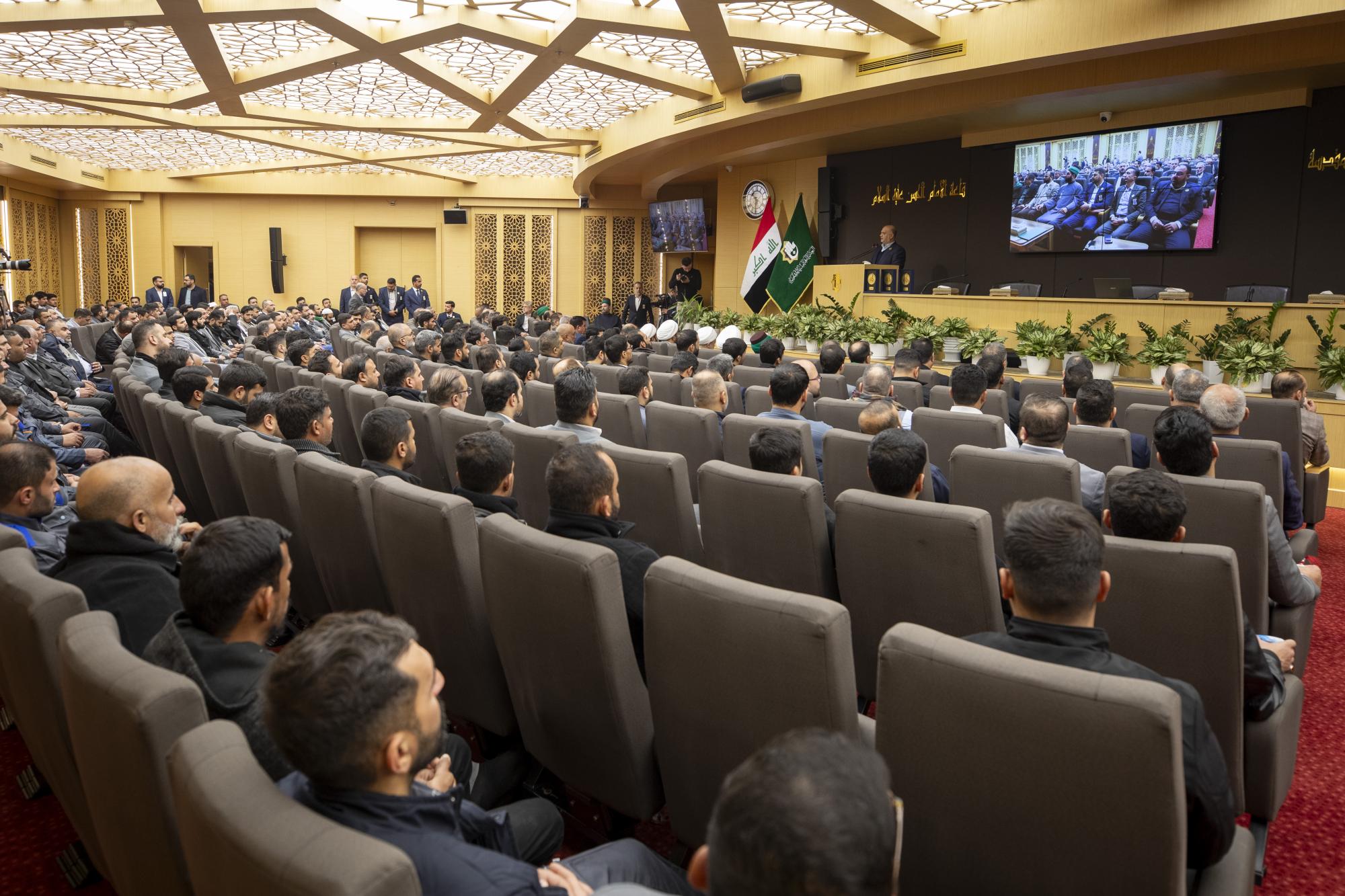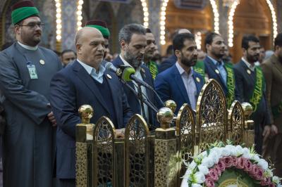 واستهلت الفعاليات بتلاوة عطرة لآيات من الذكر الحكيم، تلاها قارئ العتبة المقدسة السيد حيدر جلوخان، أعقبتها قراءة سورة الفاتحة على أرواح شهداء العراق، ثم ألقى السيد الأمين العام كلمة أكد فيها أن الخدمة في حضرة أبي الفضل العباس (عليه السلام) ليست مسؤولية إدارية فحسب، بل هي مسؤولية أخلاقية ودينية، واختبار يومي للضمير، وهي شرف في الدنيا ورفعة في الآخرة.