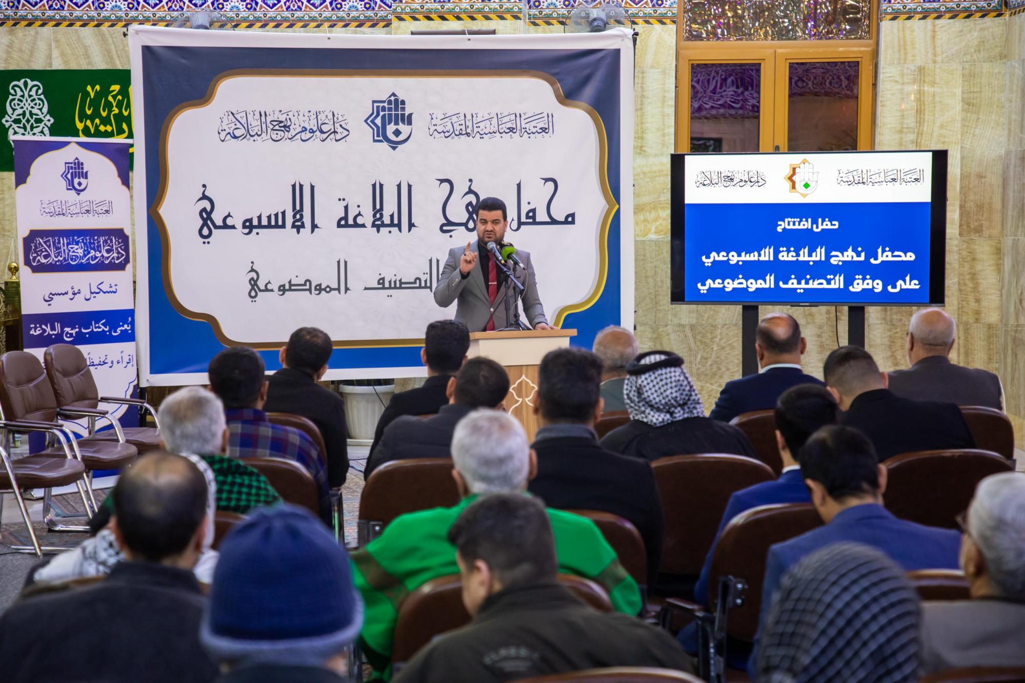 For his part, the lecturer of the gathering, Mr. Mohammed Al-Rashidi, explained that "this project is the first of its kind in Iraq, and it is a long-term project that includes, in its first phase, 40 texts from Nahj al-Balagha, with each one being studied on Sundays of each week."