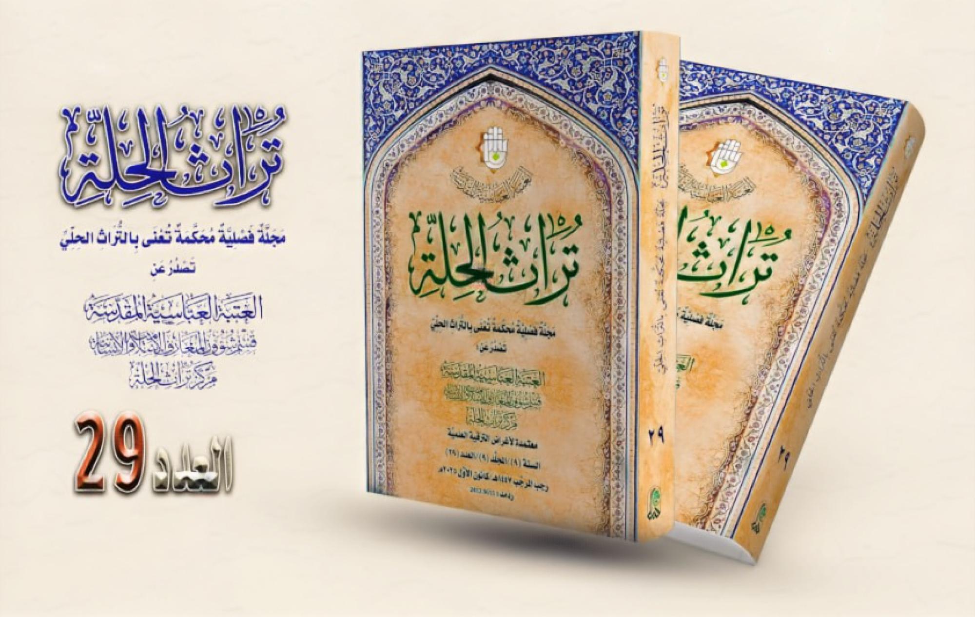 صدر حديثًا عن قسم شؤون المعارف الإسلامية والإنسانية في العتبة العباسية المقدسة، العدد التاسع والعشرين من مجلة تراث الحلة المحكمة.