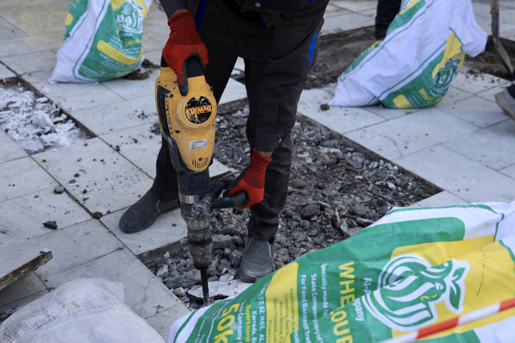 Il a expliqué que « les travaux d'entretien comprenaient le soulèvement d'une partie de l'ancien sol et le nettoyage de son emplacement afin de remplacer l'ancien marbre par un nouveau de 3 cm d'épaisseur et présentant de bonnes spécifications techniques. »