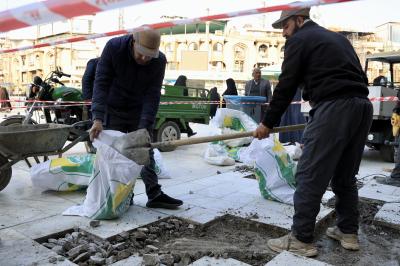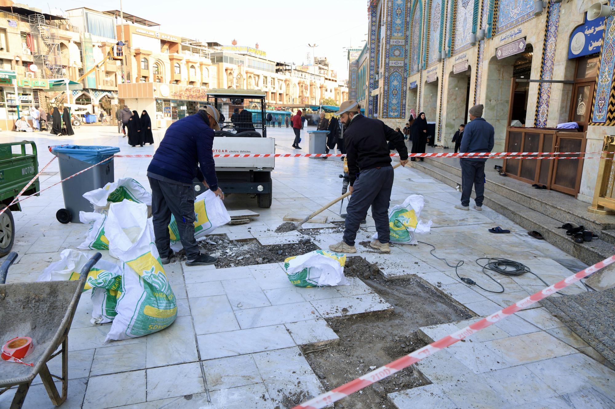 Le département des travaux publics et de la construction du Sanctuaire saint Al Abbas a procédé à des travaux d'entretien courant du revêtement de sol de l'espace situé entre les deux sanctuaires.