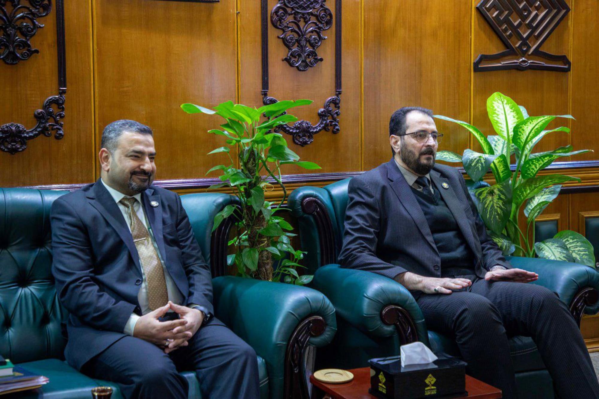 أوفد المتولّي الشرعي للعتبة العباسية المقدّسة سماحة العلّامة السيد أحمد الصافي رئيس هيأة التربية والتعليم العالي في العتبة المقدسة وعضو مجلس إدارتها الدكتور عباس الدده الموسوي، إلى جامعة العميد لتقديم التهاني والتبريكات إلى رئاسة الجامعة بتصدر كلية التمريض مراتب متقدمة في التصنيف العراقي للأقسام العلمية (IRU) لعام 2025.