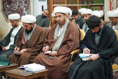 وقدّم الجلسة أستاذُ البحث الخارج في الحوزة العلمية بالنجف الأشرف السيد عبد الحسين القاضي، وشهدت تقديم مداخلات من قبل الطلبة الحاضرين لطرح أسئلتهم ومناقشة ما ورد في الشرح.