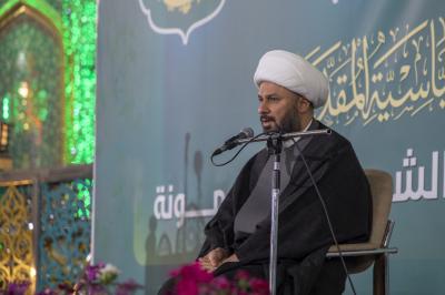 Sheikh Al-Hasnawi congratulated the attendees on the auspicious birth anniversary of Ali Al-Akbar (peace be upon him), and discussed aspects of his biography and life in the house of Prophethood and the message, recalling his immortal stances in supporting his father Imam al-Hussayn (peace be upon him) in Karbala.