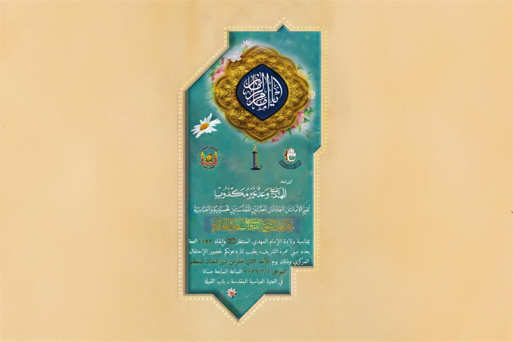 دعت الأمانتان العامتان للعتبتين المقدستين الحسينية والعباسية المهتمين إلى المشاركة في مهرجان الشموع السنوي بنسخته السادسة والعشرين، إحياءً لذكرى ولادة الإمام المهدي (عجل الله فرجه الشريف).