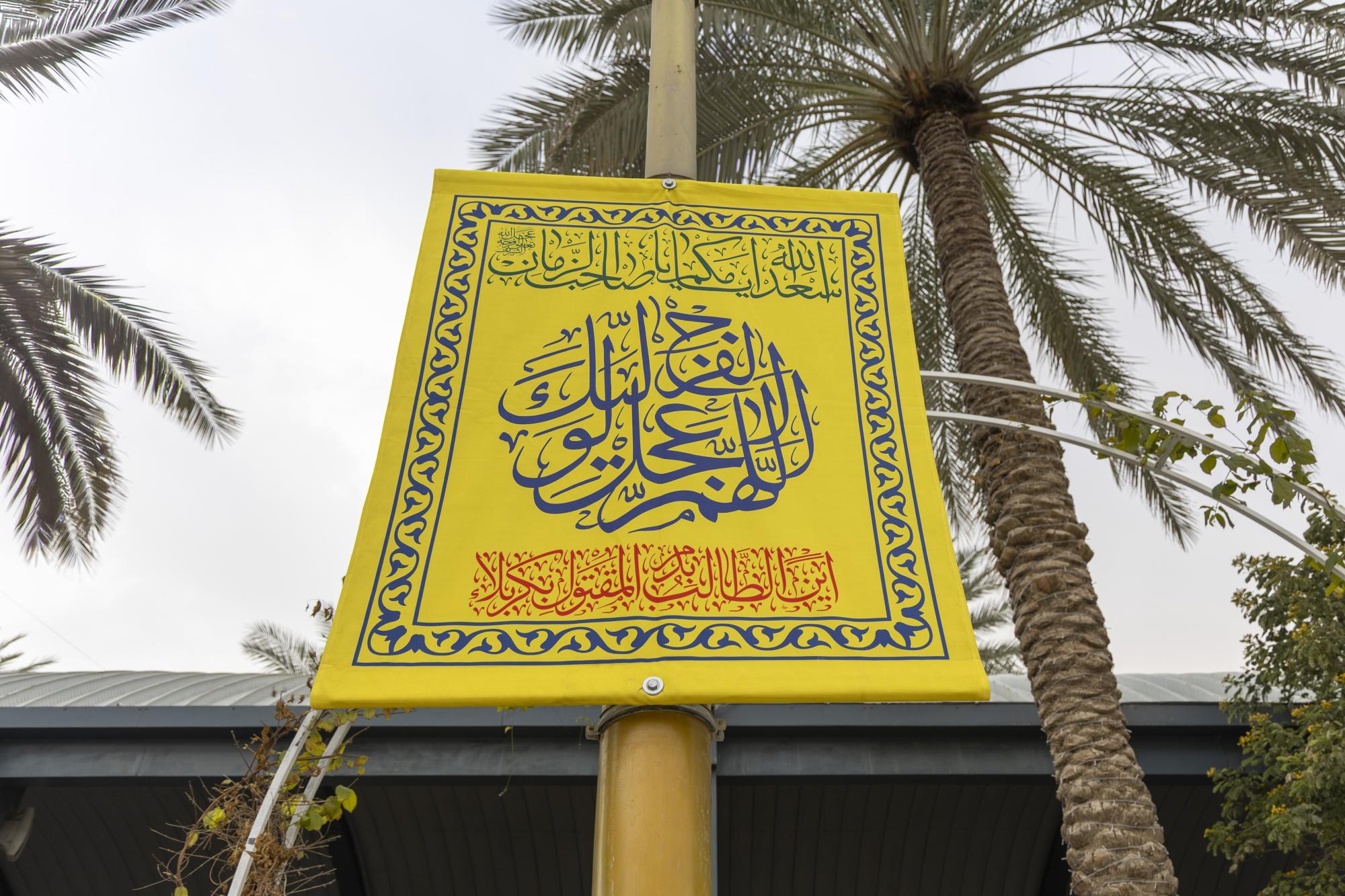 وحملت اللافتات عبارات التهنئة بهذه المناسبة العطرة، وصُمِّمت بأحجامٍ وتصاميم مختلفة، ووُزِّعت في أماكن متعدّدة ضمن الساحة الوسطية بين مرقدي الإمام الحسين وأخيه أبي الفضل العباس(عليهما السلام).