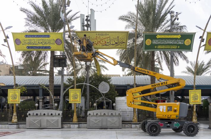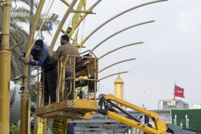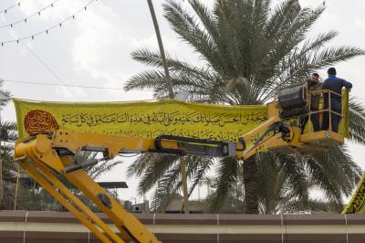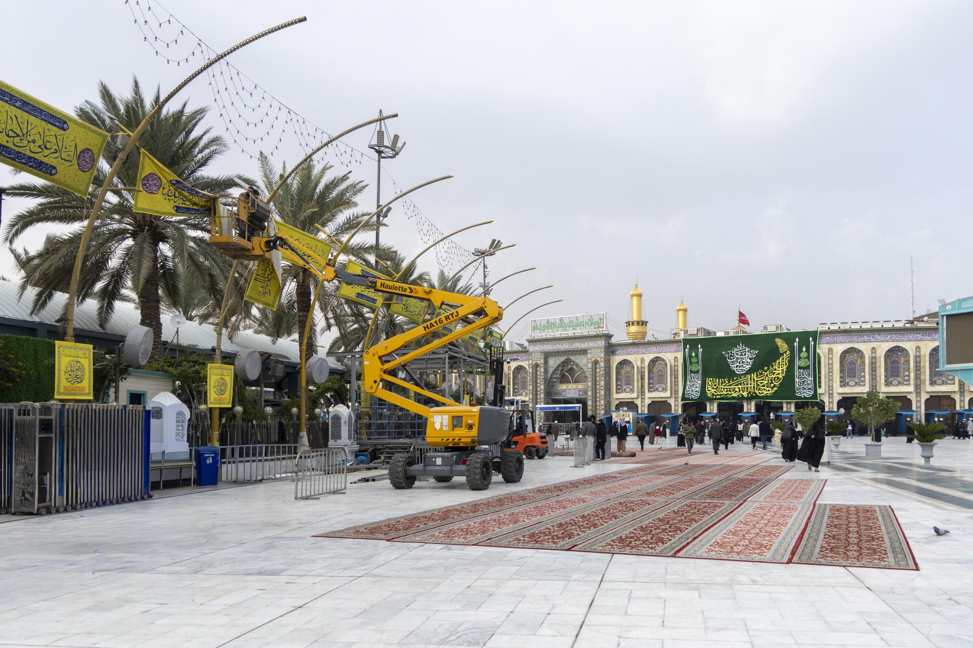 باشر قسمُ بين الحرمين الشريفين في العتبة العبّاسية المقدّسة، بنشر لافتات الفرح والزينة في الساحة الوسطية؛ لإحياء ذكرى ولادة الإمام المهدي المنتظر(عجّل الله فرجه الشريف).