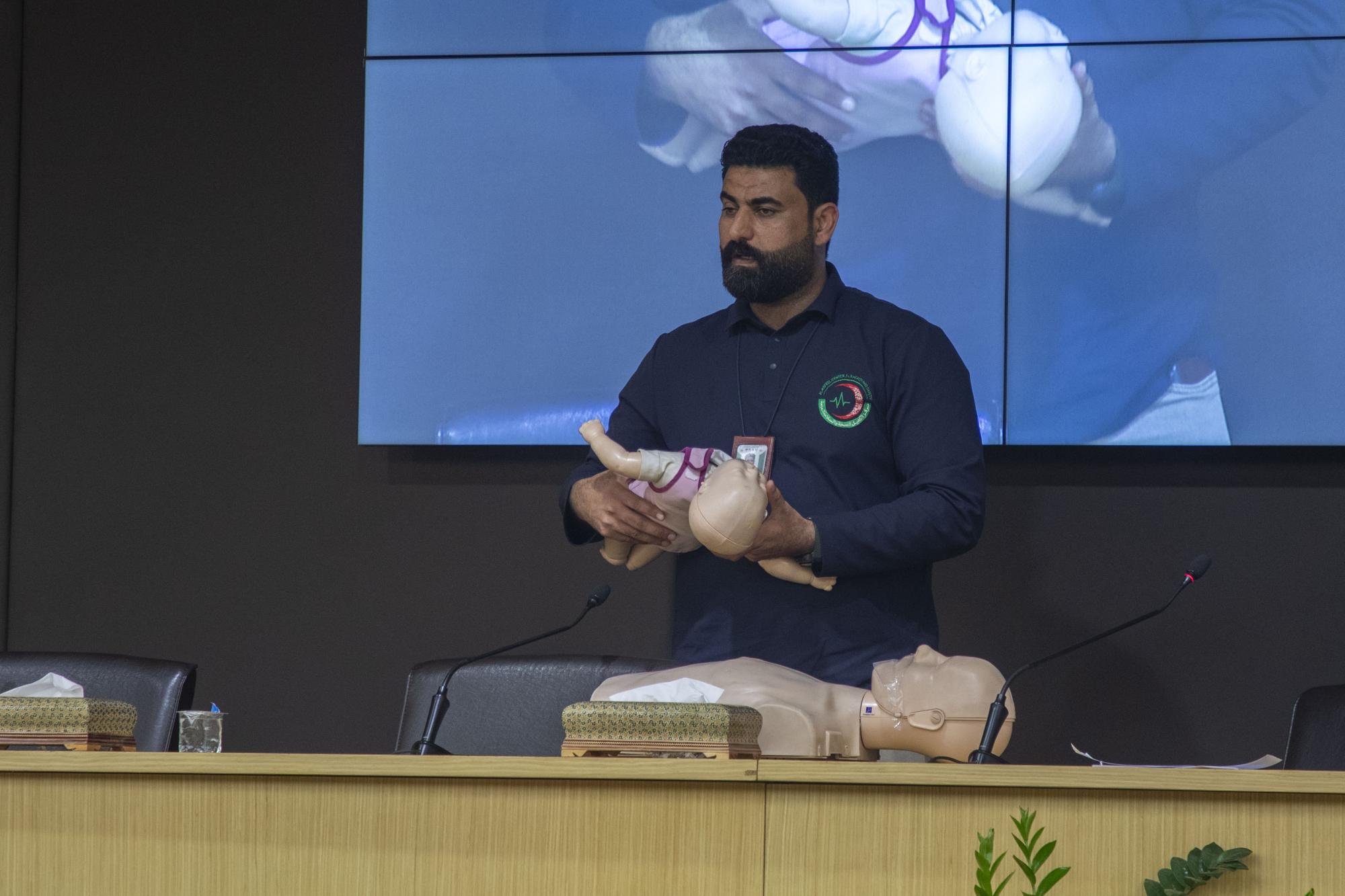 وأضاف أنّ "الورشة تضمنت محاور متعددة شملت آليات التعامل مع حالات الإنعاش القلبي الرئوي (CPR)، وحالات النزف والاختناق، إضافة إلى كيفية حمل المصاب ونقله إلى أقرب مفرزة طبية".