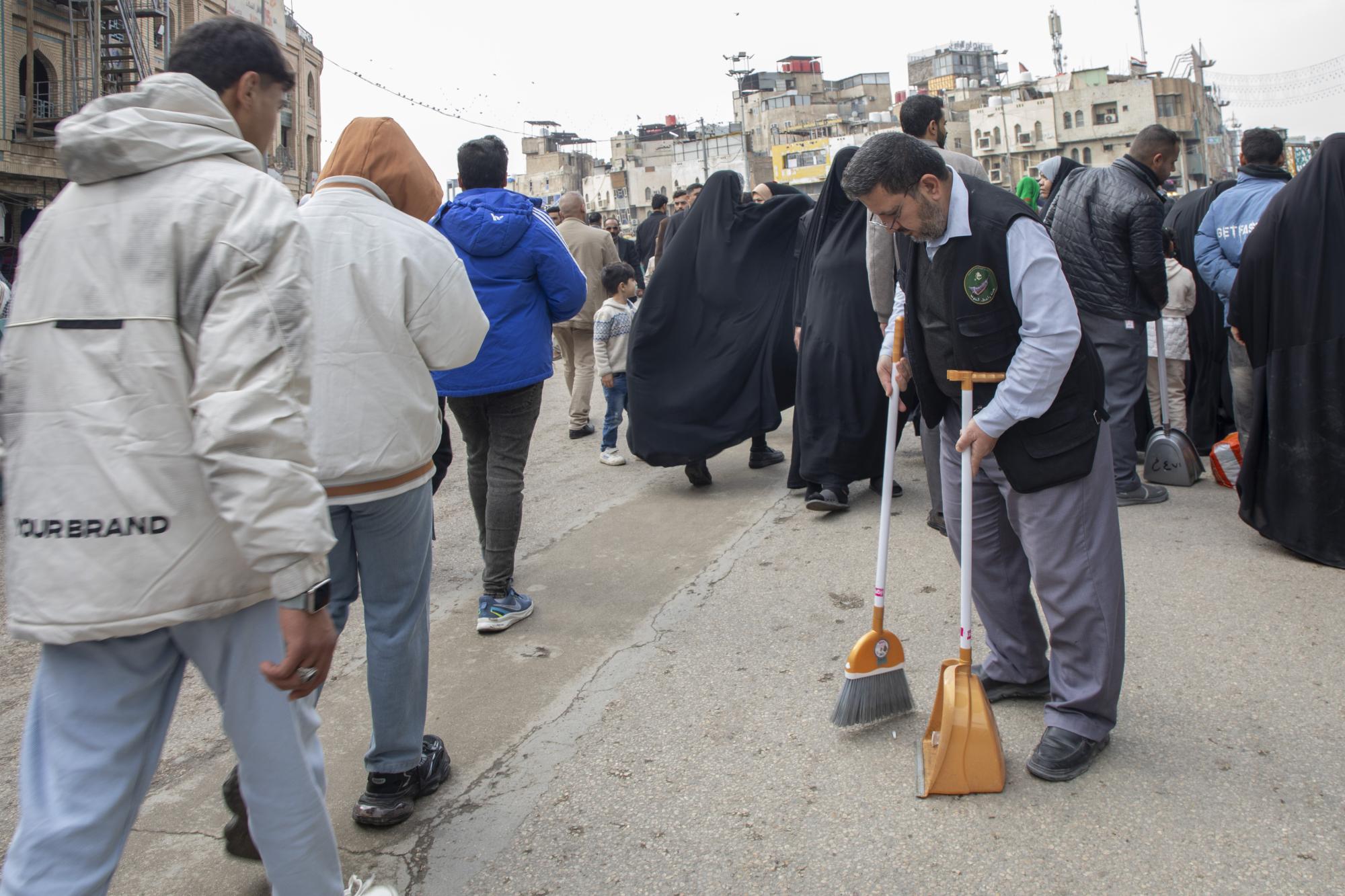 وبيّن معاون رئيس القسم أنّ "شعبة النظافة تضطلع بمهمّة غسل وتنظيف محيط العتبة العبّاسية المقدّسة بالجهد البشري والآلي، وباستخدام العجلات وكابسات النفايات، فضلًا عن تنفيذ أعمال التنظيف على مدار الساعة" مشيرًا إلى "توفير جميع المتطلّبات اللوجستية للزائرين، وتهيئة المجاميع الصحية بالمستلزمات اللّازمة".