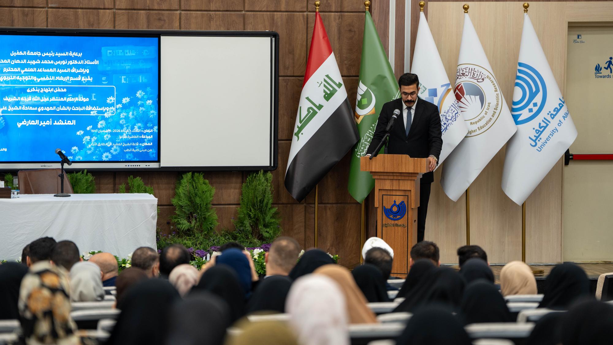 أقامت جامعة الكفيل محفلًا بمناسبة ولادة الإمام المهدي المنتظر (عجّل الله فرجه الشريف)، بحضور عمداء الكليات ومعاونيهم، إلى جانب نخبة من التدريسيين وعدد من طلبة الجامعة.