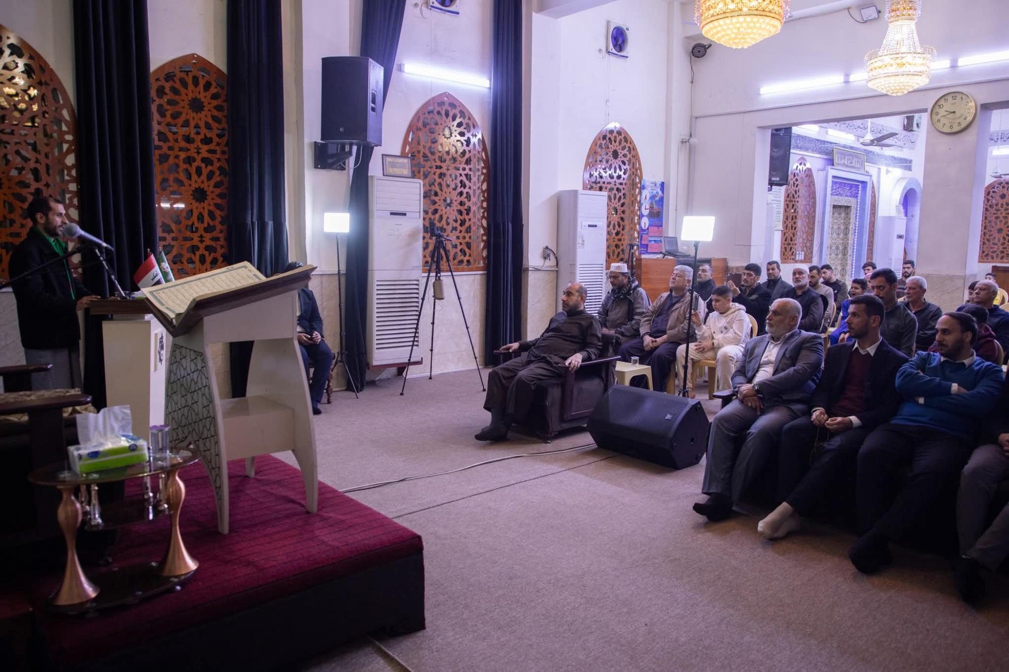 Organizasyon ve Mekan: Kompleks’e bağlı Bağdat Kur'an-ı Kerim Enstitüsü; Kur'an etkinlikleri serisi kapsamında, Sileyh bölgesindeki Eimme (a.s.) Camii ve Hüseyniyesi'nde haberimizin konusu olan mahfili organize etti.