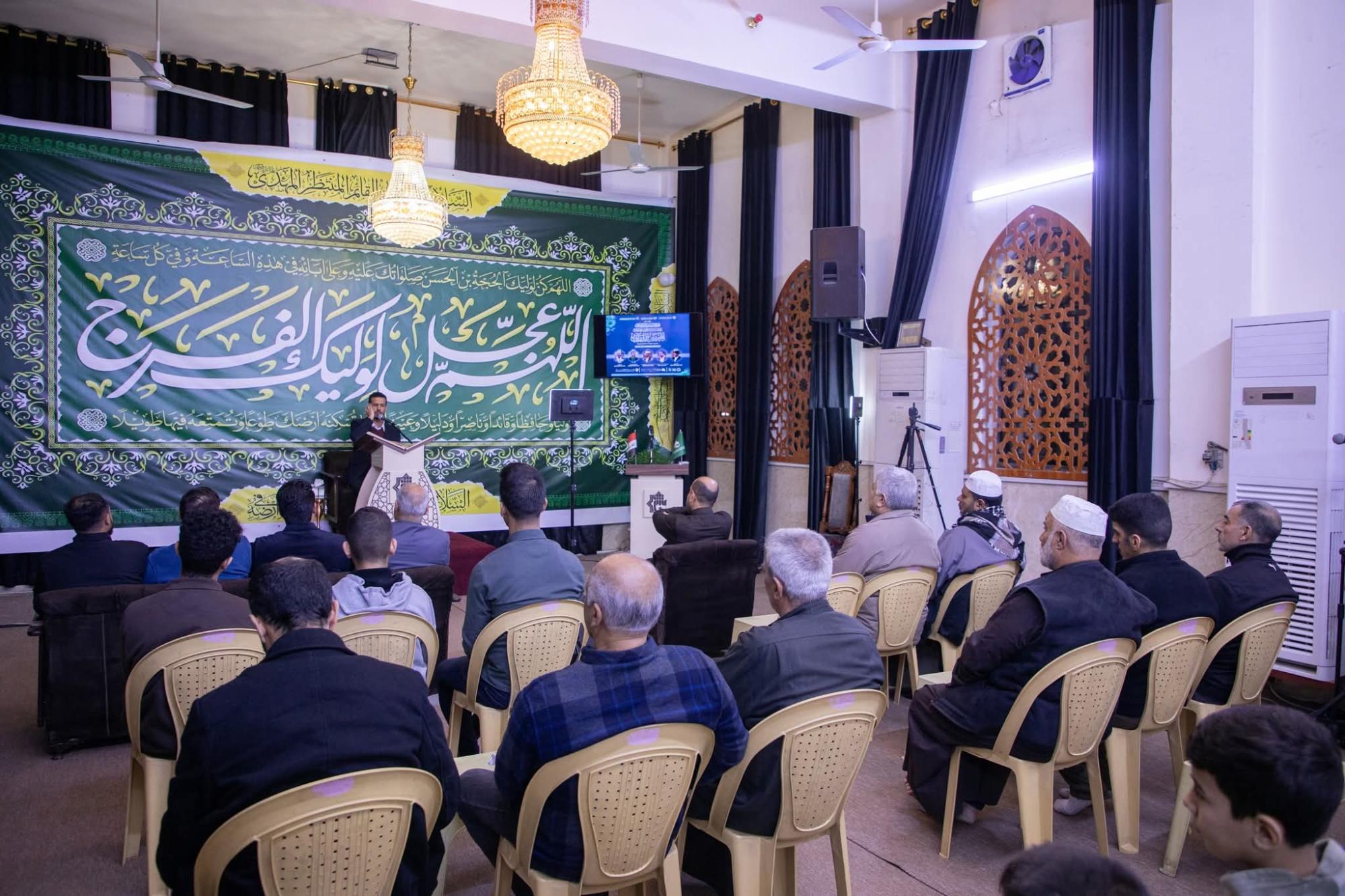 - Seyyid Hamza el-Musavi tarafından yapılan cami konuşması. Seyyid el-Musavi konuşmasında; dini münasebetleri yaşatmanın önemini, Kur'an-ı Kerim ve Ehlibeyt'in (a.s.) yoluyla olan bağı güçlendirmenin gerekliliğini ele aldı.