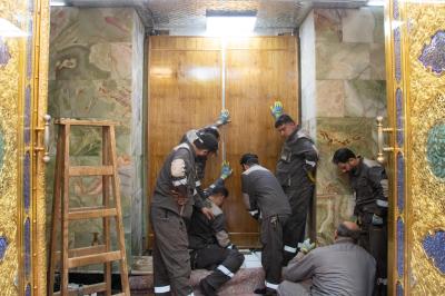 Mukaddes Hz. Abbas (a.s.) Türbesi'ne bağlı Zarîh Pencerelikleri ve Kapıları Üretim Bölümü, Mukaddes Türbe'de Hz. İmam Seccad (a.s.) Kapısı'nın kurulum çalışmalarını başarıyla bitirdi.