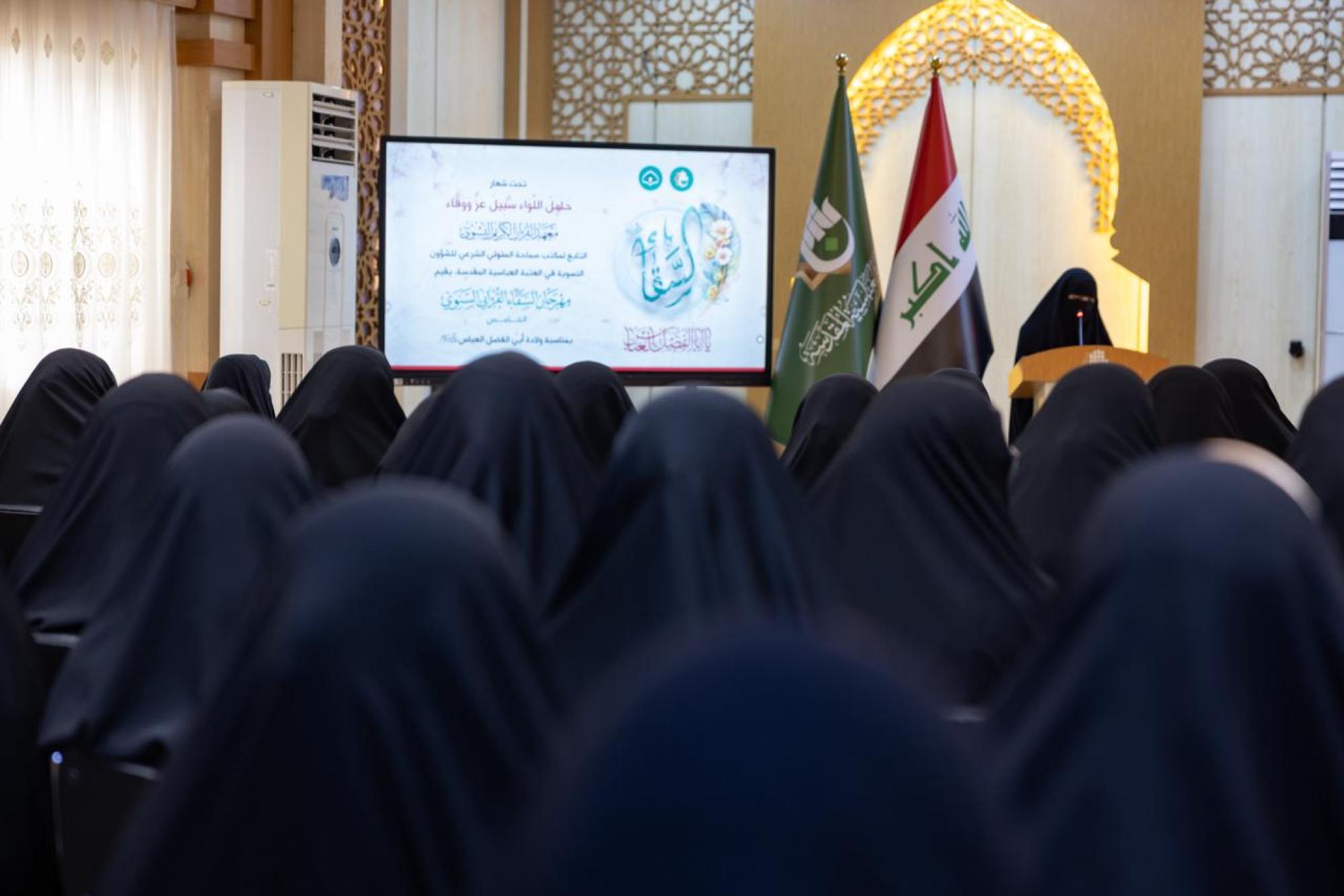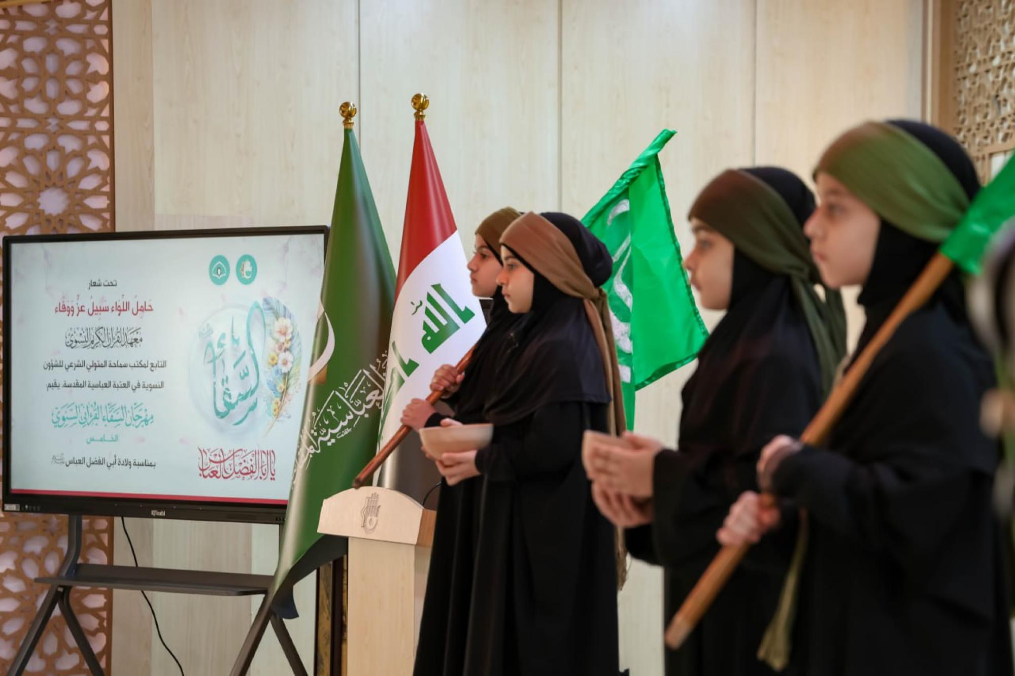 ونظّم المهرجانَ معهدُ القرآن الكريم النسويّ التابع لمكتب المتولّي الشرعيّ للشؤون النسوية في العتبة المقدّسة، تحت شعار (حاملُ اللواءِ سبيلُ عزٍّ ووفاء).