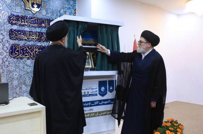 Der geistlich-Bevollmächtigte des Heiligen Abbassitischen Schreins, Seine Eminenz Sayed Ahmad al-Safi, und der externe Forschungsprofessor am Heiligen Seminar von Qom, Seine Eminenz Sayed Muhammad Jawad al-Shabiri al-Zanjani, leiteten die Enthüllung der drei Bücher: Hidayat al-Anam fi Hukm Amwal Al-Imam (Leitfaden für die Menschheit zu den Regeln des Reichtums des Imams) von Scheich al-Mamqani, Risalat al-Fadhil al-Fasharki (Briefe des tugendhaften Fasharki) von Scheich Muhammad Baqir al-Fasharki und Sharh Mashaykhah al-Tahdhib (Erläuterung des Scheichats von Tahdhib) von Sayed Muhammad Ashraf al-Alawi al-Amili.