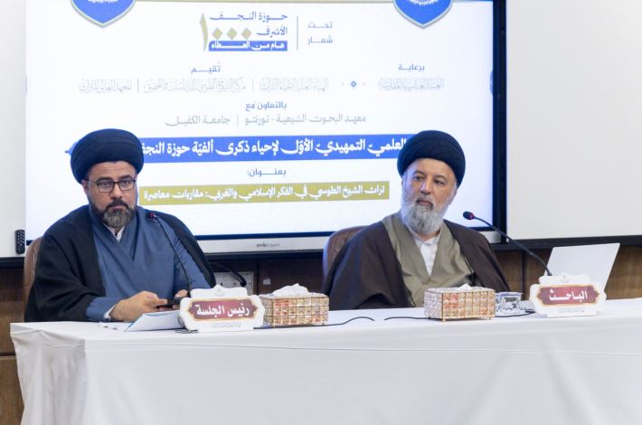 جاء ذلك في الجلسة البحثية الصباحية باللغة العربية من اليوم الثاني للمؤتمر العلمي التمهيدي الأول لإحياء ذكرى ألفية حوزة النجف الأشرف، الذي يقيمه مركز الشيخ الطوسي للدراسات والتحقيق التابع للهيأة العليا بالتعاون مع جامعة الكفيل ومعهد البحوث الشيعية – تورنتو، تحت شعار (حوزة النجف الأشرف: ألف عام من العطاء) وبعنوان (تراث الشيخ الطوسي في الفكر الإسلامي والغربي: مقاربات معاصرة).