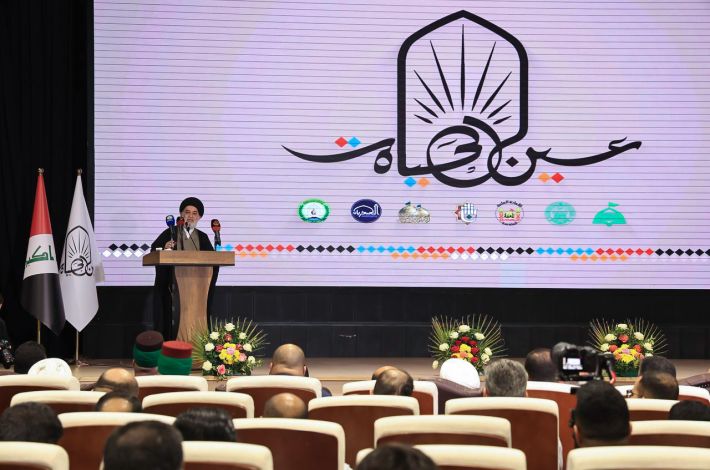 Dies geschah während seiner Rede bei der Eröffnungsfeier der vierten Ausgabe des "Lebensquelle"-Festivals, das von der Al-Qabas-Stiftung für Kultur und Entwicklung in Zusammenarbeit mit den heiligen Alawitischen, Husseintischen, Kadhemitischen, Askaritischen und Abbassitischen Schreinen und einer Reihe renommierter intellektueller Institutionen auf dem internationalen Ausstellungsgelände in Bagdad, zeitgleich mit dem Jahrestag der Geburt von Imam Al-Mahdi (möge Gott sein edles Erscheinen beschleunigen) vom 12. bis 16. Februar 2026.