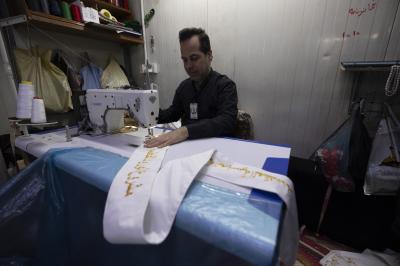 وتعمل ملاكات القسم على خياطة أكثر من 6 آلاف وشاح سترتديه التلميذات خلال فعاليات الحفل، الذي ينظم يومي السادس عشر والسابع عشر من شهر شباط الجاري.