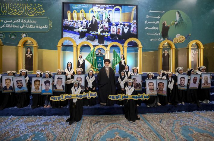 VIII. Merkezi İslami Öğretileri Uygulama Yaşına Giriş (Şer'i Mükellefiyet) Töreni etkinlikleri kapsamında; Mukaddes Hz. Abbas (a.s.) Türbesi Şer'i Mütevellisi Seyyid Ahmed es-Safi ile mükellef şehit kızları hatıra fotoğrafı çektirdi.