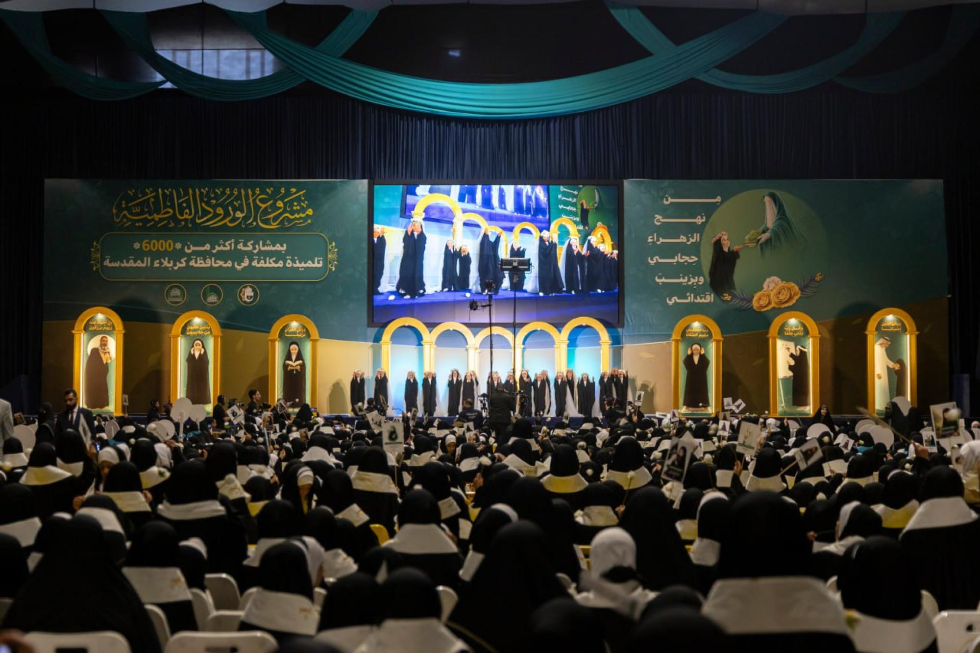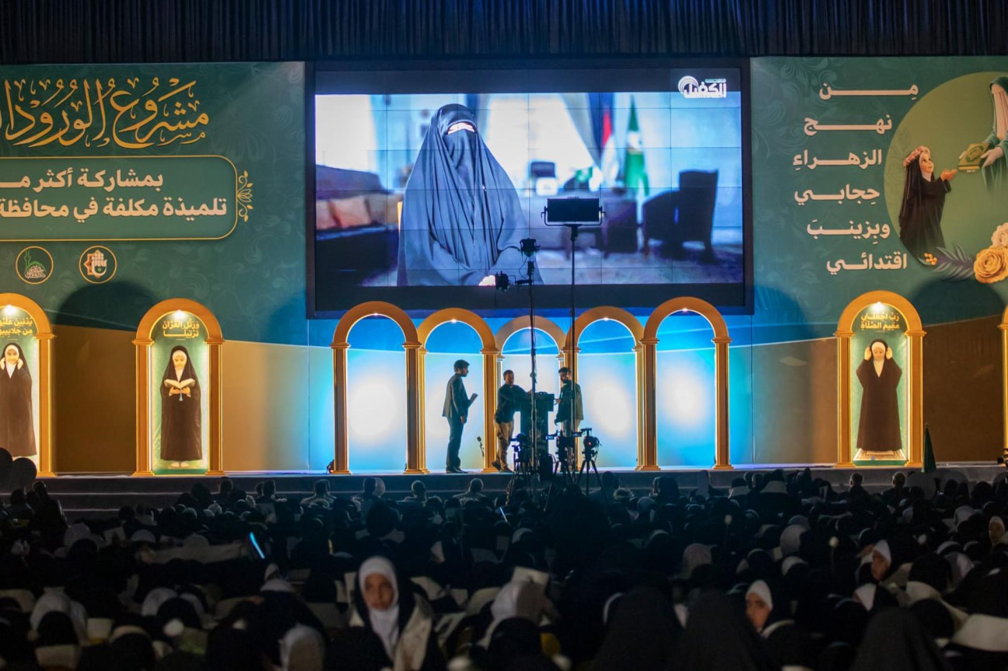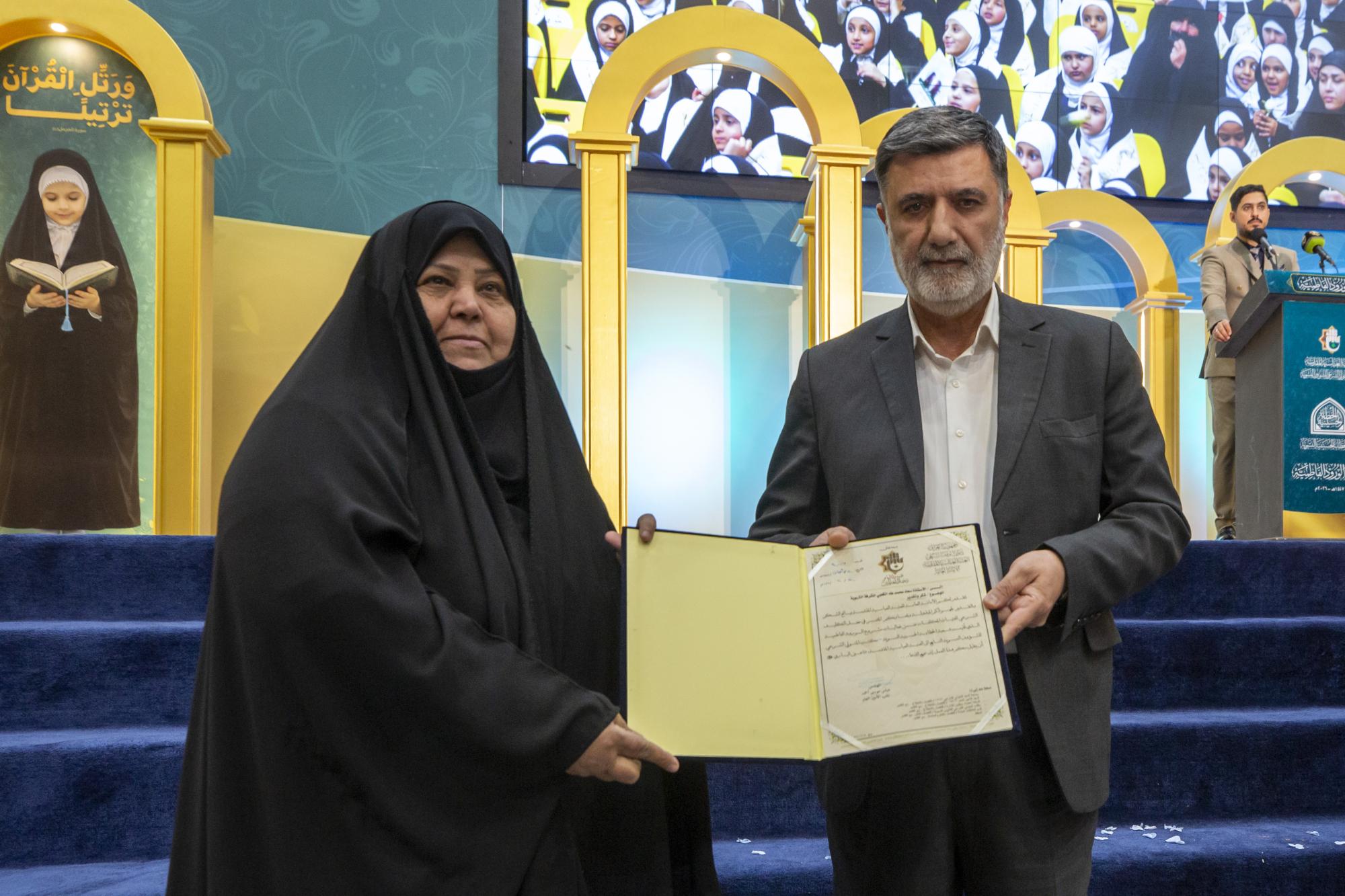 The ceremony was organized by the Women's Hussaini Public Speaking Division, affiliated with the Office of the Senior Official for Women's Affairs at the Holy Shrine, in collaboration with the Karbala Education Directorate, under the slogan (From the Path of Zahra, My Hijab, and by Zainab, My Role Model).