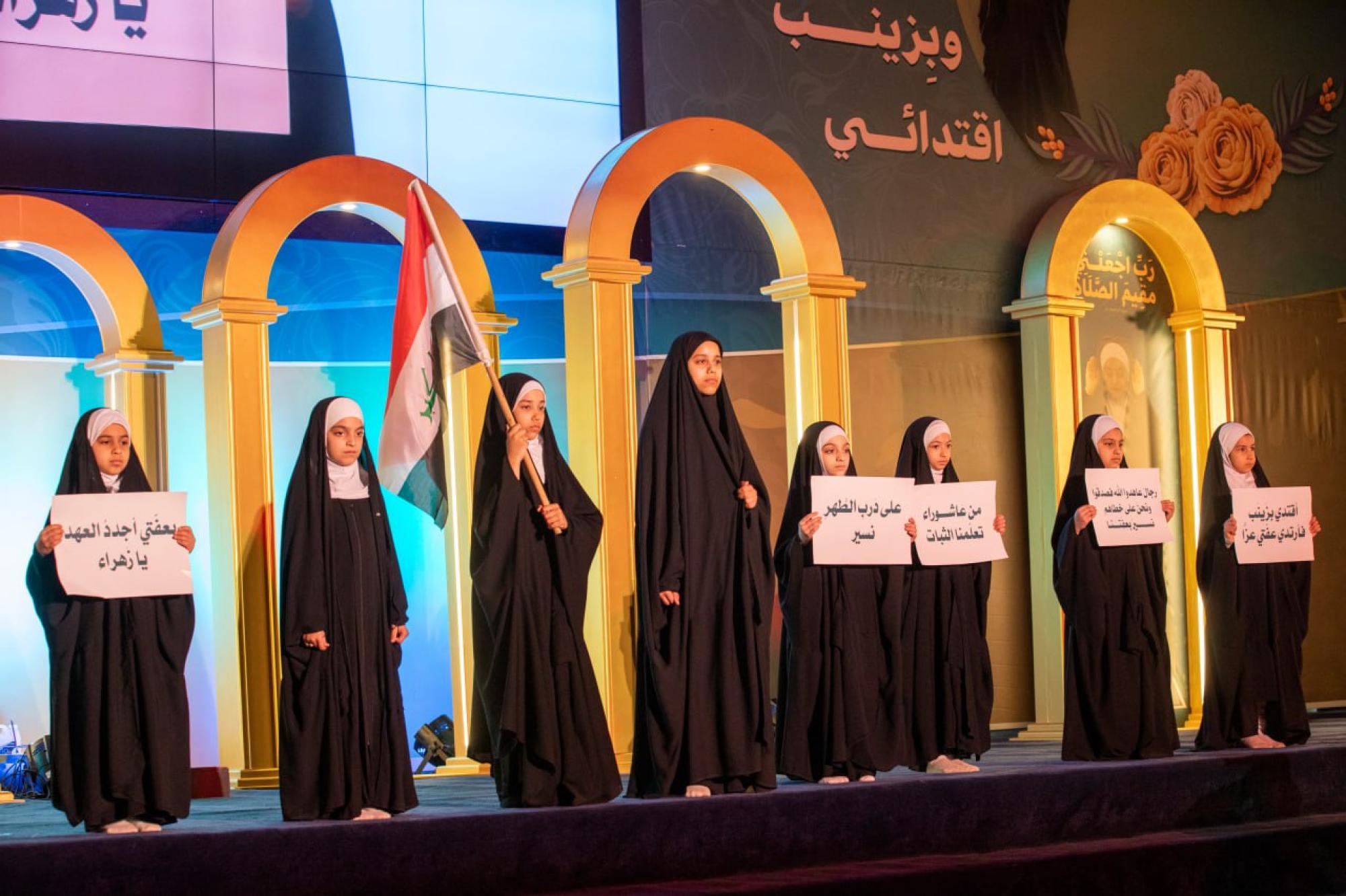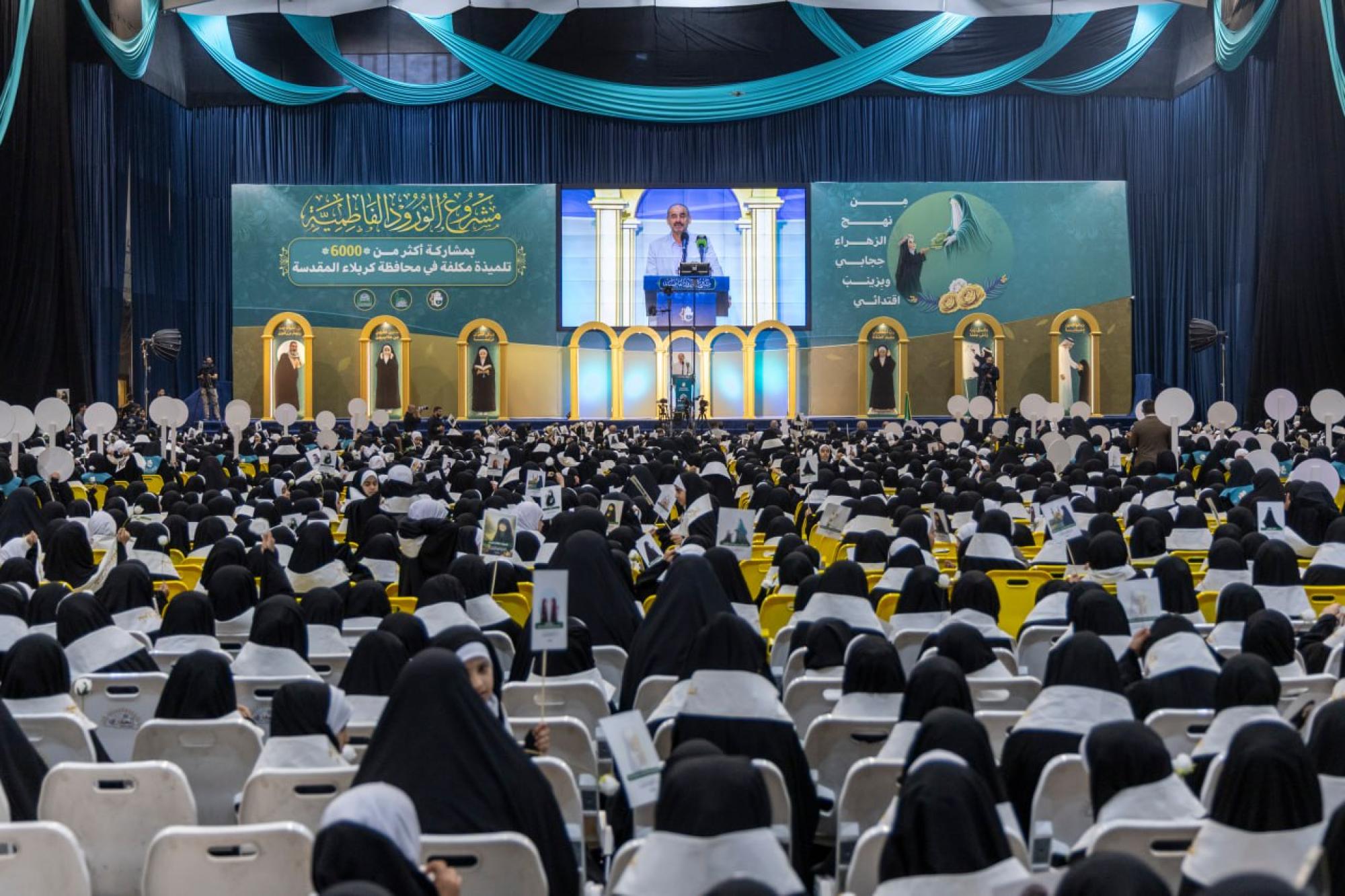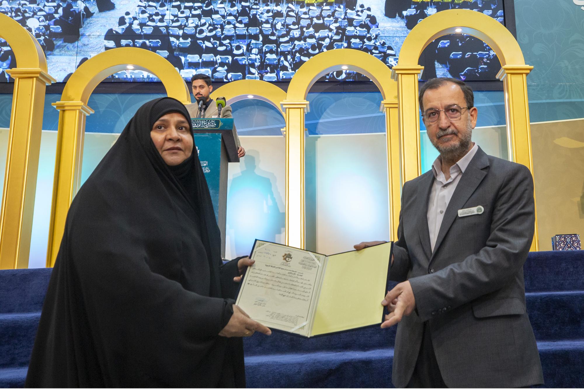The ceremony was organized by the Women's Hussaini Public Speaking Division, affiliated with the Office of the Senior Official for Women's Affairs at the Holy Shrine, in collaboration with the Karbala Education Directorate, under the slogan (From the Path of Zahra, My Hijab, and by Zainab, My Role Model).