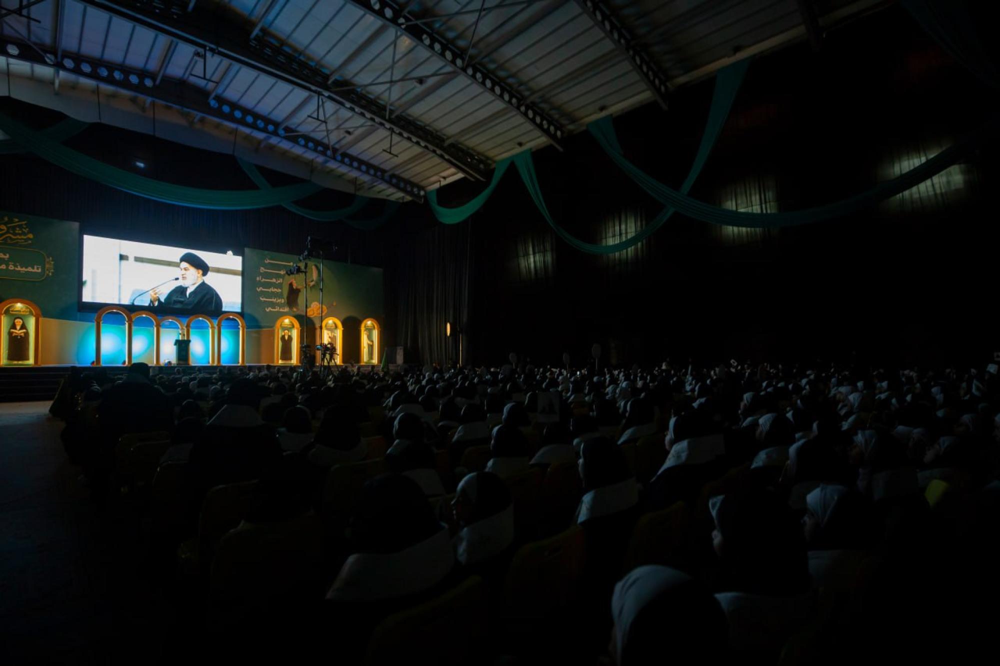 The events included the students reciting the oath of assignment and its anthem, screening an introductory film about the Fatimi Roses project, presenting a theatrical performance titled "From the Tents to the Fatwa," as well as reciting poetry, and taking a commemorative photo with His Eminence Sayed Al-Safi alongside the assigned students and the daughters of the martyrs, in a gesture of loyalty to their noble sacrifices.