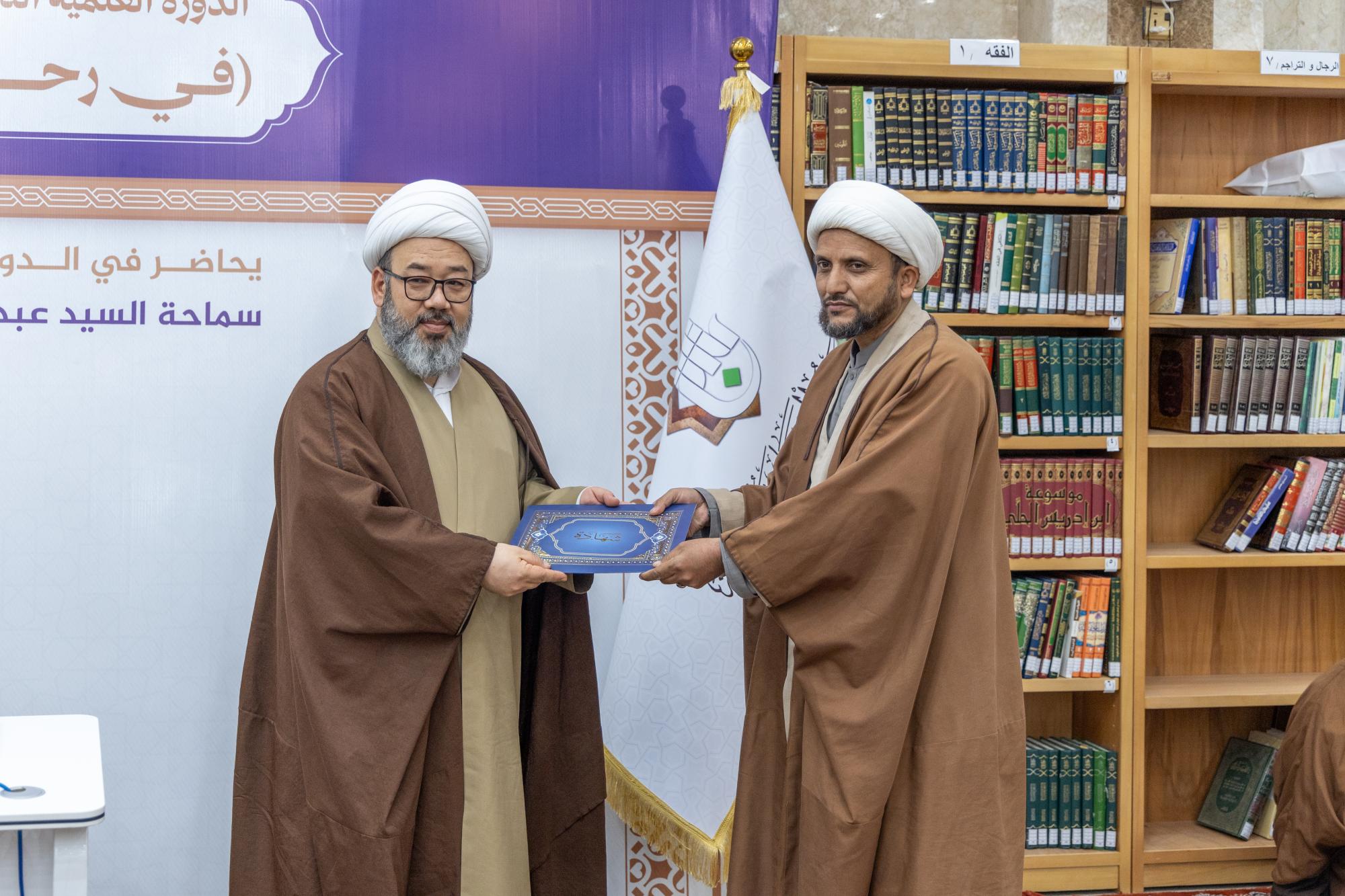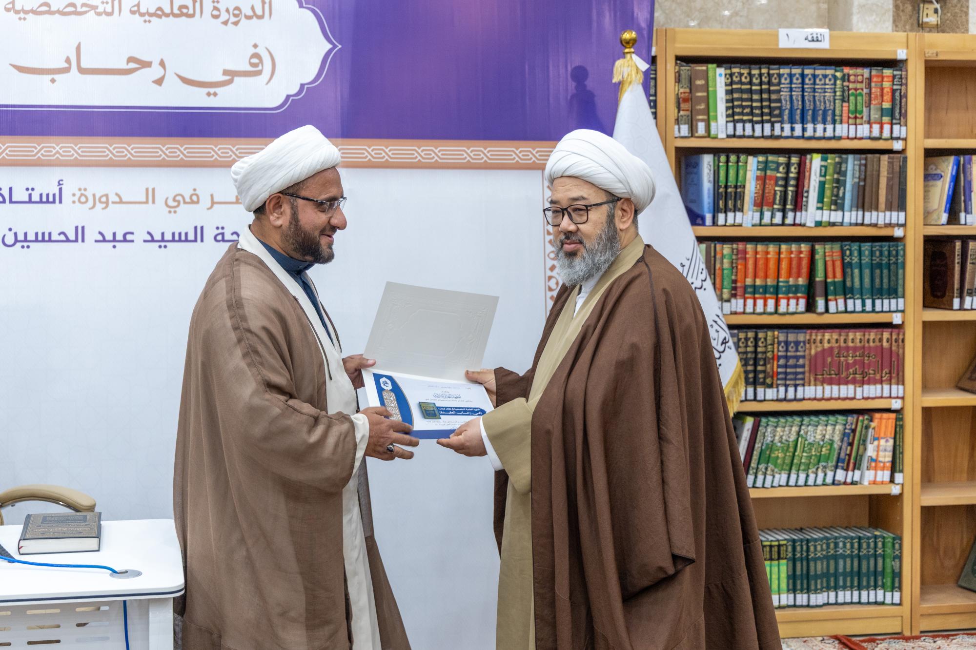 Ödül Töreni: Kapanışta Mirası Yaşatma Yüksek Kurulu; kurs etkinliklerinin başarısına katkıda bulunanları ve Necef-i Eşref Havzası'ndaki dini ilimler öğrencilerinden oluşan katılımcıları ödüllendirdi.