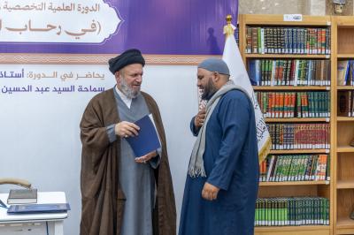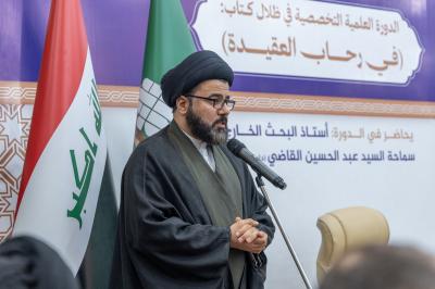 - Kursun konuşmacısı ve Necef-i Eşref İlim Havzası'nda "Bahs-i Haric" (İleri Düzey Fıkıh Araştırma) hocası olan Seyyid Abdulhüseyin el-Kadı bir konuşma yaptı.