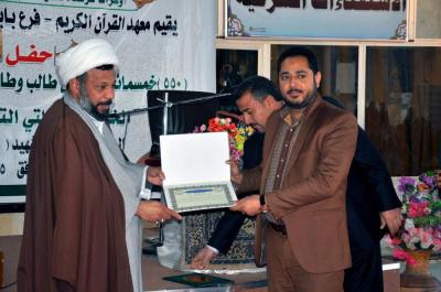 اختتم معهدُ القرآن الكريم فرع محافظة بابل دورةً جديدةً لكوكبةٍ من قرّاء القرآن الكريم (طلاب وطالبات)، أُقيم حفلُ الختام في مزار زيد الشهيد(عليه السلام) وبلغ عددُ المتخرّجين (550) طالباً وطالبةً، حيث تلقّوا خلال هذه الدورة دروساً نظرية وعمليّة في أحكام التلاوة والتجويد ليكونوا مؤهّلين للدخول في دوراتٍ متقدّمة، لتُضاف هذه الدورة الى سلسلة الدورات التي يُقيمها معهدُ القرآن الكريم في العتبة العباسيّة المقدّسة سواءً التي تُقام في كربلاء أو خارجها.