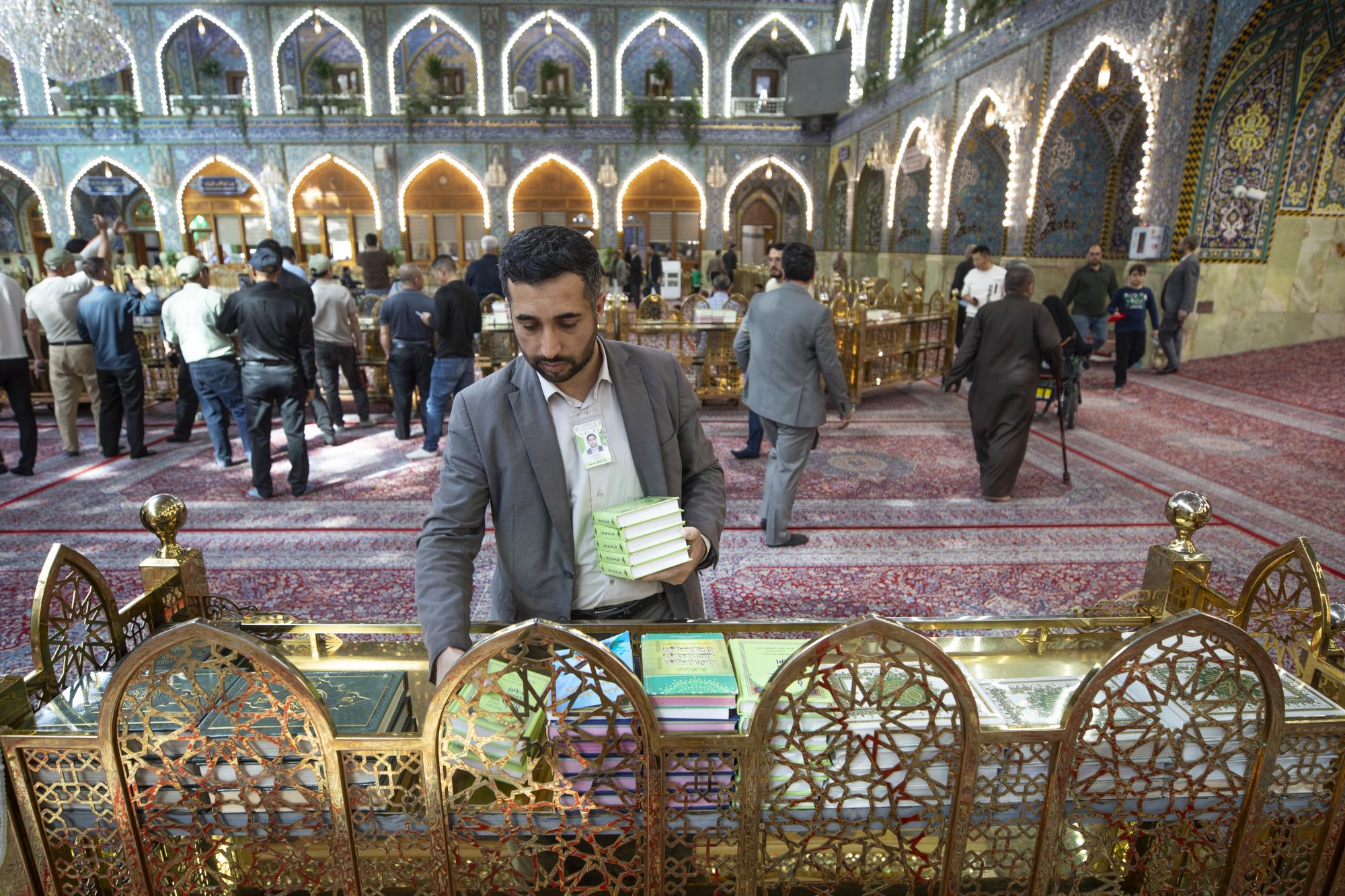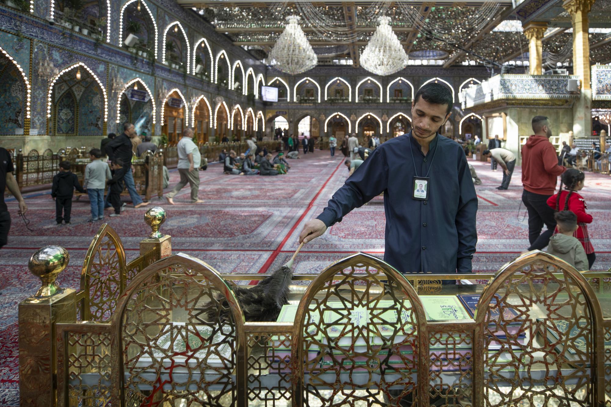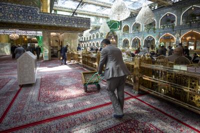 The assistant head of the department, Mr. Zain Al-Abidin Adnan Al-Quraishi, said: "The department's staff worked on preparing the corridors of the holy courtyard and dividing them into sections to organize the movement of visitors, in addition to distributing books of visits and prayers specific to the holy month, and replacing fifty thousand Turbahs with new ones."