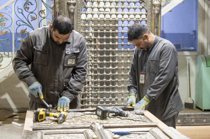Akaongeza kuwa “Hatua za ukarabati zimefanywa kwa utaratibu maalum, wameanza kukarabati sehemu za dirisha zilizotengenezwa mwaka 1962m, kwa kuondoa sehemu zilizo haribika na kuzipeleka katika makumbusho ya Atabatu Askariyya”. Akabainisha kuwa “Ukarabati huo ni sehemu ya makubaliano ya ushirikiano yaliyopo baina ya Ataba mbili tukufu Abbasiyya na Askariyya”.