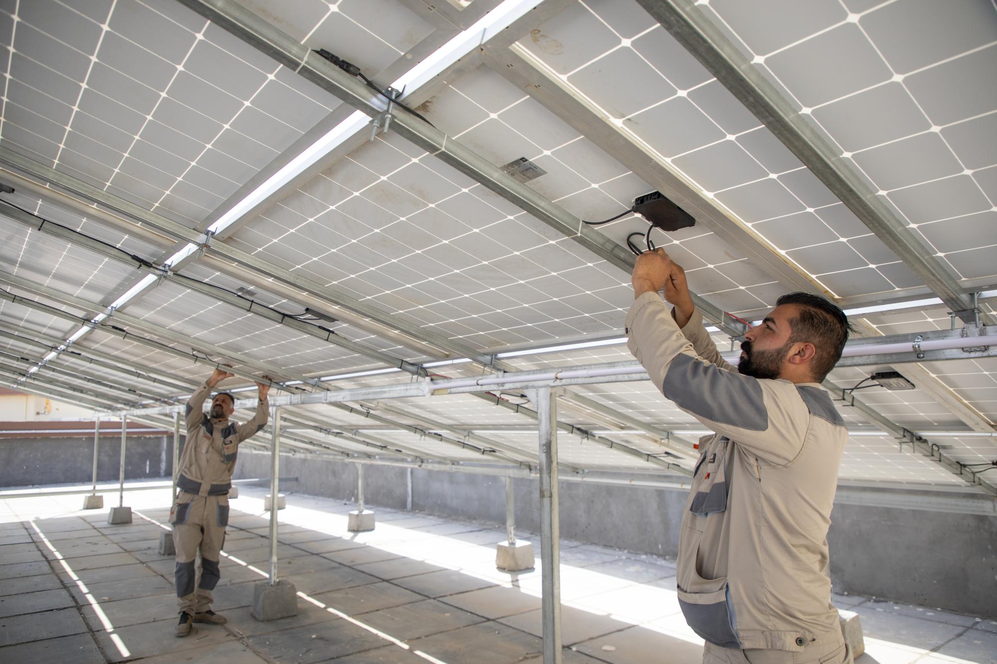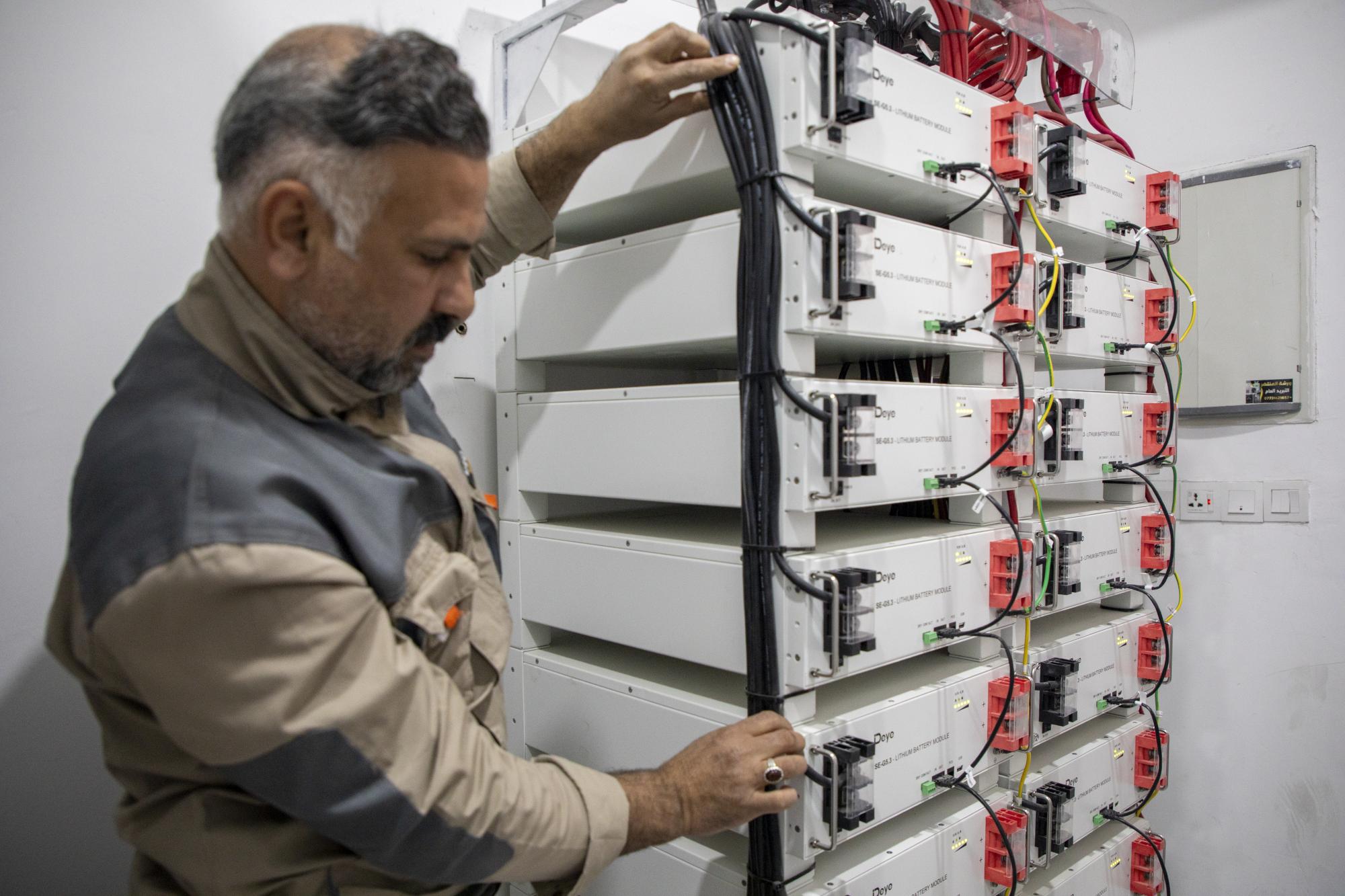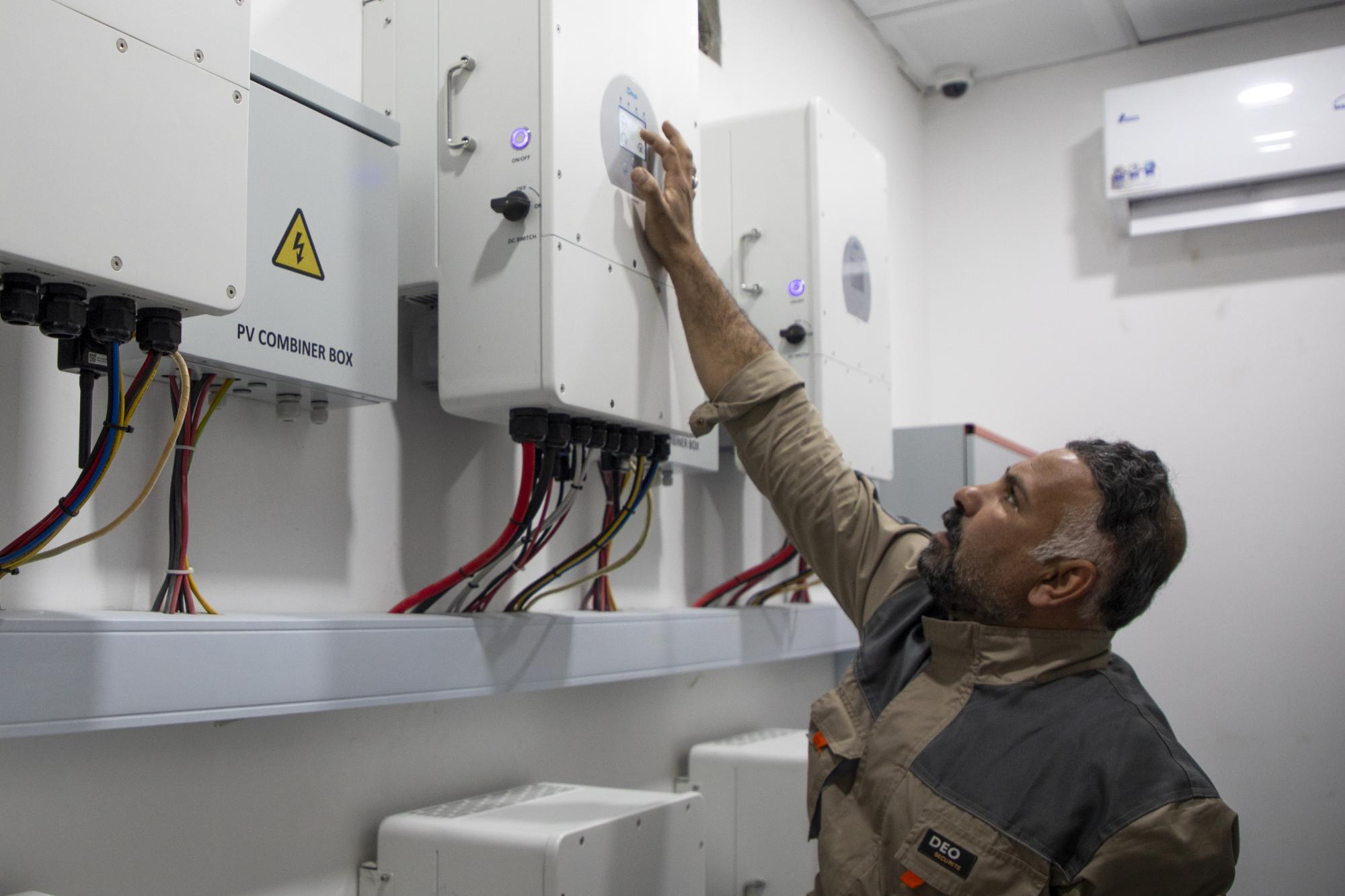 وتابع حمزة أنَّ "هذه المنظومة تتكون من ألواح شمسية بسعة 50 كيلوواط، مع عاكسات هجينة بسعة 72 كيلوواط، وبطاريات ليثيوم بسعة 100 كيلوواط، بما يضمن توفير طاقة مستقرة وفعَّالة لتشغيل الأنظمة المختلفة".