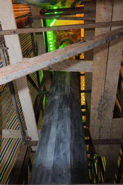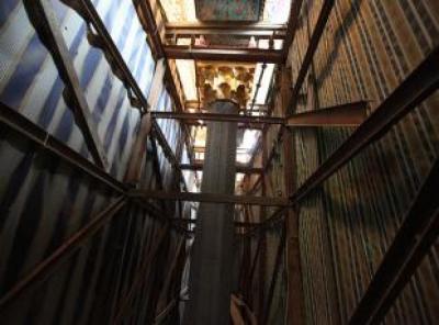 المرحلة الثانية: إزالة المواد المثبّتة على الأعمدة البالغ عددُها عشرة أعمدة، أربعة منها بارتفاع (9م) والستة الأخرى بارتفاع (6م) .