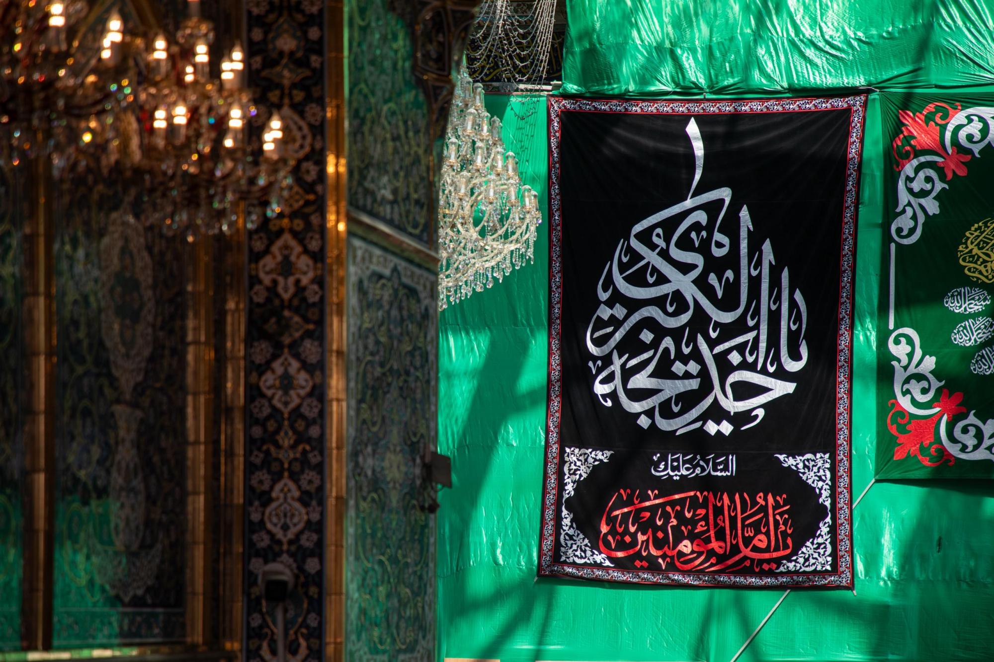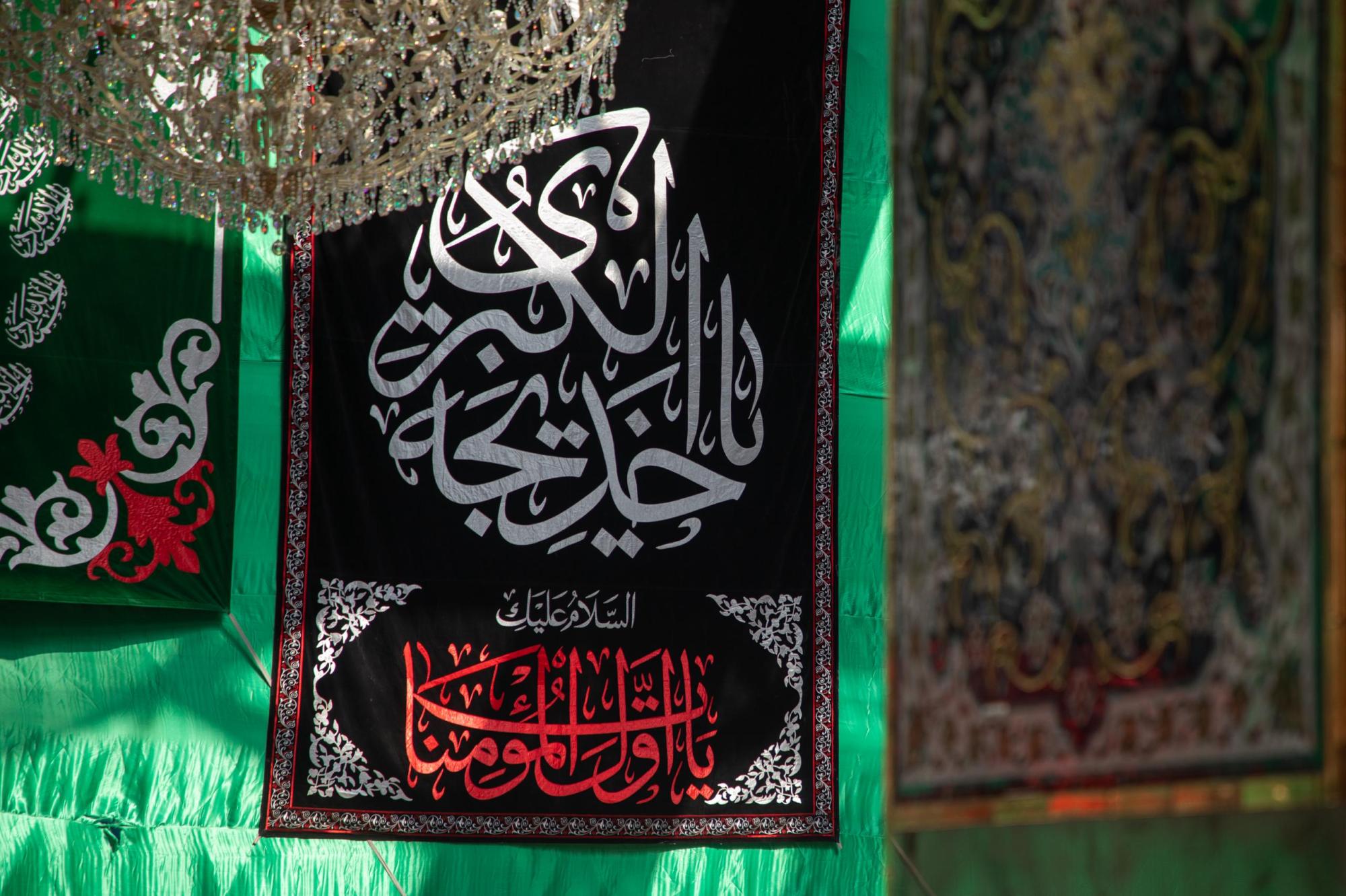 Die Mitarbeiter der Abteilung für die Pflege des Heiligen Schreins zeigten Zeichen der Trauer und hängten schwarze Banner auf, die mit Beileidsbekundungen zum Todestag von Sayeda Khadijah Al-Kubra (Friede mit ihr) bestickt waren, aus Loyalität gegenüber dem Propheten Mohammed (Gottes Segen und Frieden mit ihm und seiner heiligen Familie) und in Anerkennung ihrer Verdienste um die Unterstützung des Islam.