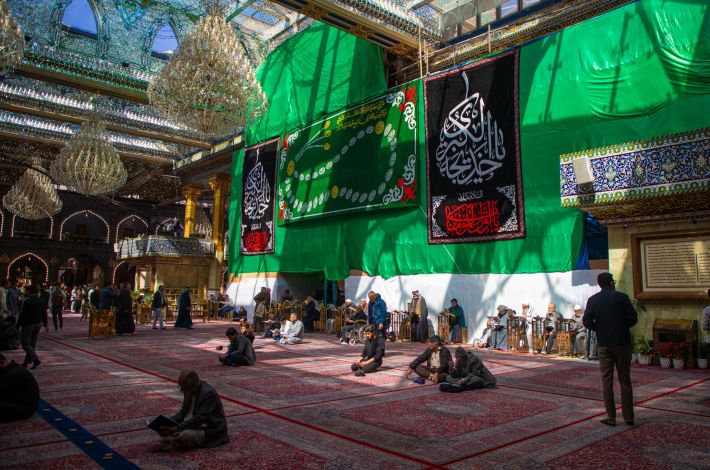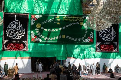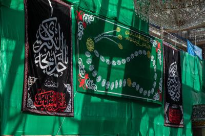 Eine Reihe von Bannern und schwarzen Stoffstücken wurde im heiligen Innenhof des Schreins von Aba al-Fadl Al-Abbass (Friede mit ihm) und in der Umgebung verteilt.