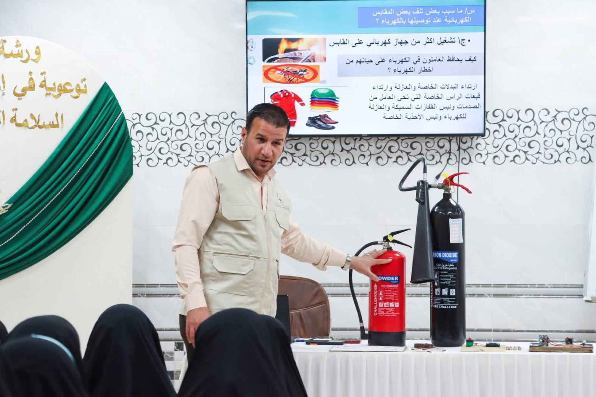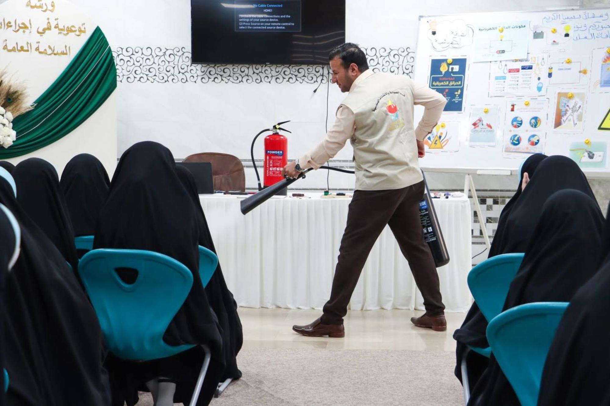 أقام قسم الصيانة والإنشاءات الهندسية في العتبة العباسية المقدسة دورة تدريبية عن إجراءات السلامة العامة لطالبات مدرسة جود العميد الابتدائية التابعة لمجموعة العميد التربوية في مدينة كربلاء المقدسة.