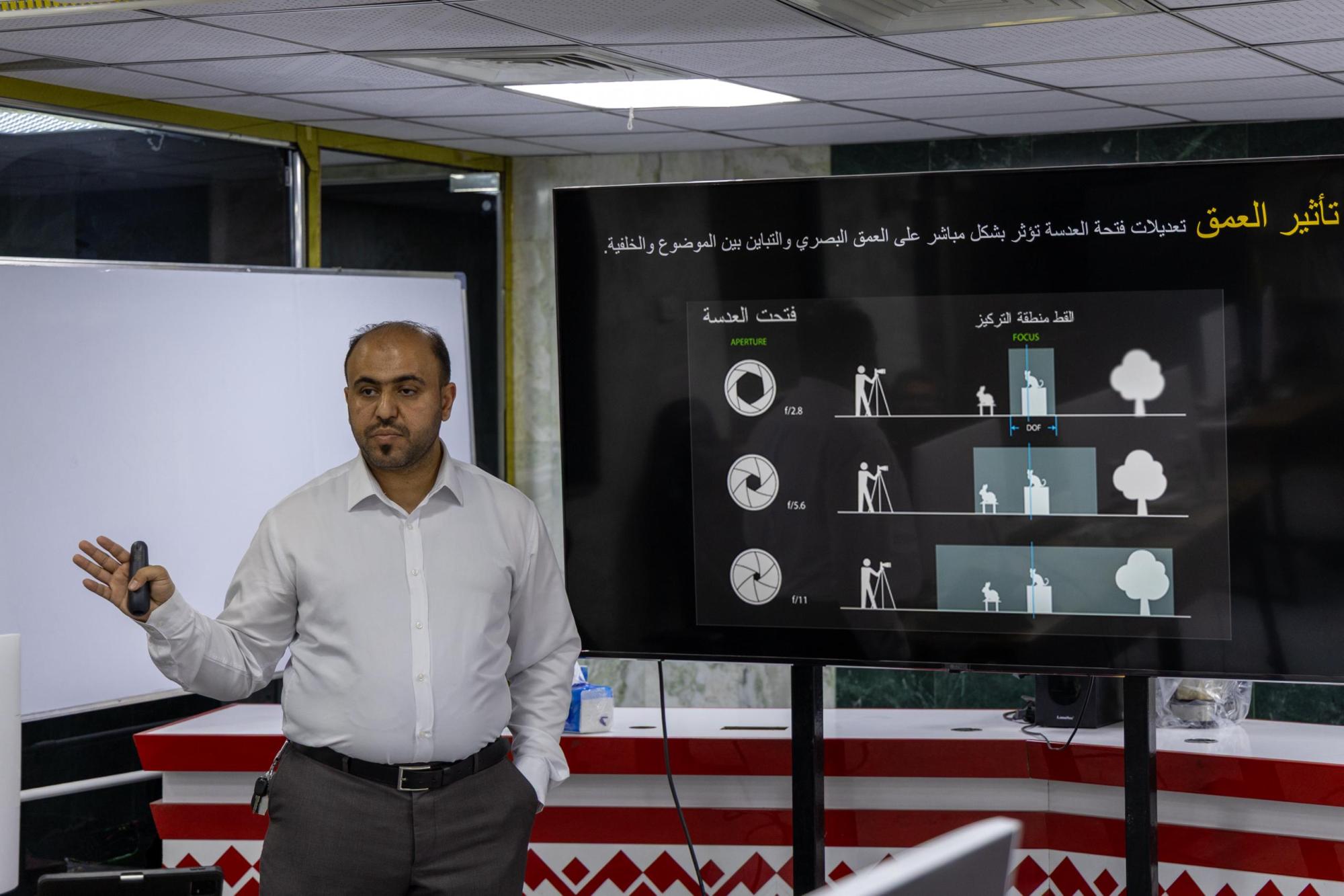 وقال مدرب الدورة السيد محمد كامل الشمري: إنَّ "الدورة تُعدّ الثانية ضمن المستوى الأساسي في مجال التصوير الفيديوي، وهي تهدف إلى تطوير مهارات المصورين التقنية والفنية، وتناولت كيفية ضبط إعدادات الكاميرا وإدارة التعريض الضوئي الصحيح، والتكوين البصري".