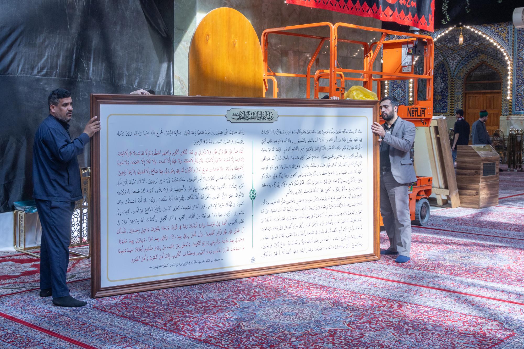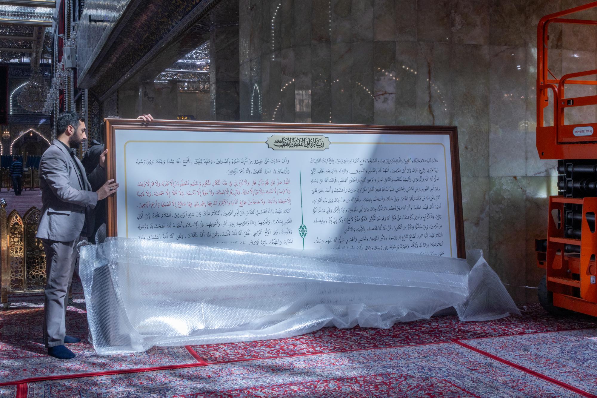 وأضاف أنّ "هذه الأعمال تأتي ضمن برنامج دوري تتبناه العتبة المقدسة لتجديد اللوحات الخاصة بالزيارات والأدعية داخل الصحن الشريف، بما ينسجم مع الطابع الروحي والمعماري للمكان، ويسهم في إظهار نصوص الزيارة بصورة واضحة تليق بقدسية المرقد الطاهر".