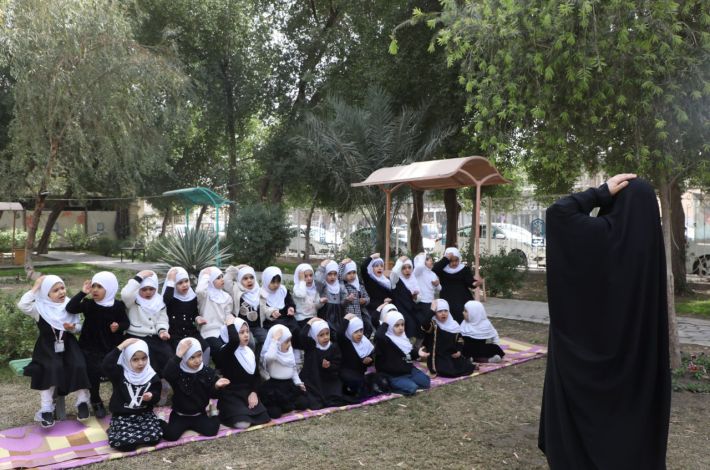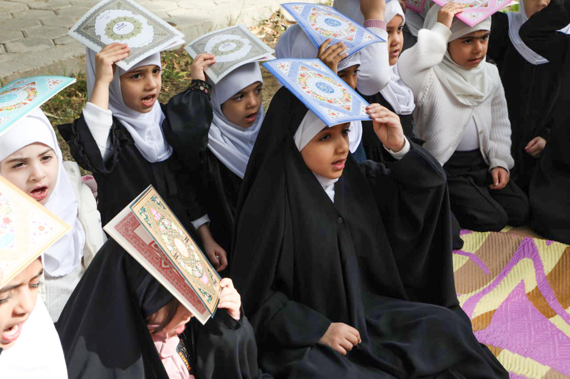 نظم معهد القرآن الكريم النسوي التابع لمكتب المتولي الشرعي للشؤون النسوية في العتبة العباسية المقدسة، جلسة عبادية لفتيات روضة أحباب الكفيل القرآنية التابعة للمعهد، إحياءً لليالي القدر.