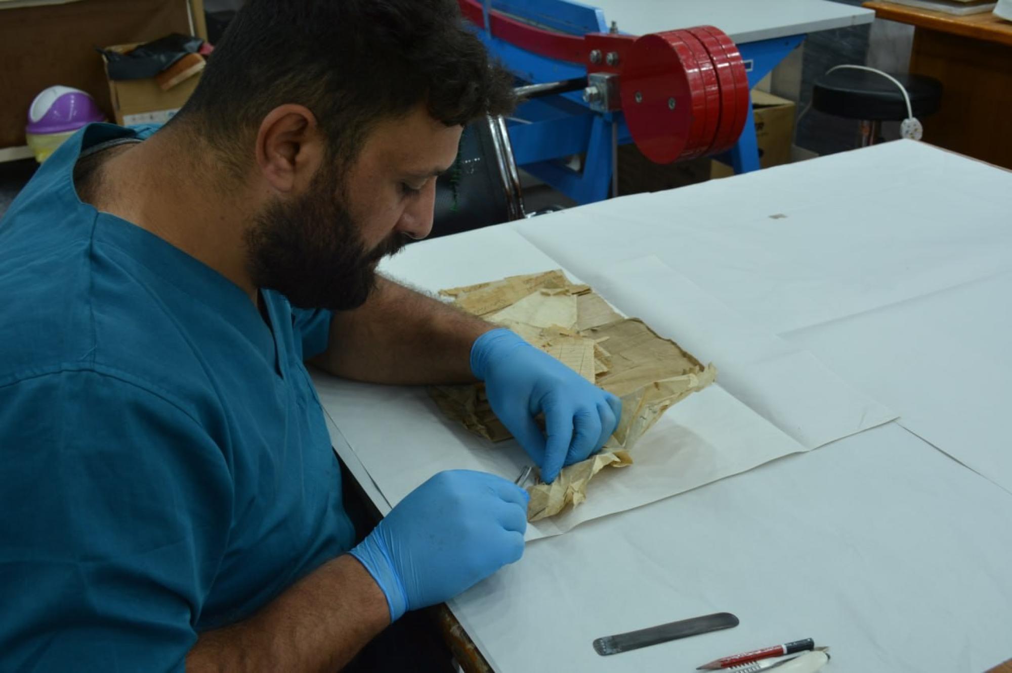 باشر قسم الشؤون الفكرية والثقافية في العتبة العباسية المقدسة أعمال ترميم التراث الوثائقي والمخطوط الخاص بالعتبة الكاظمية المقدسة.