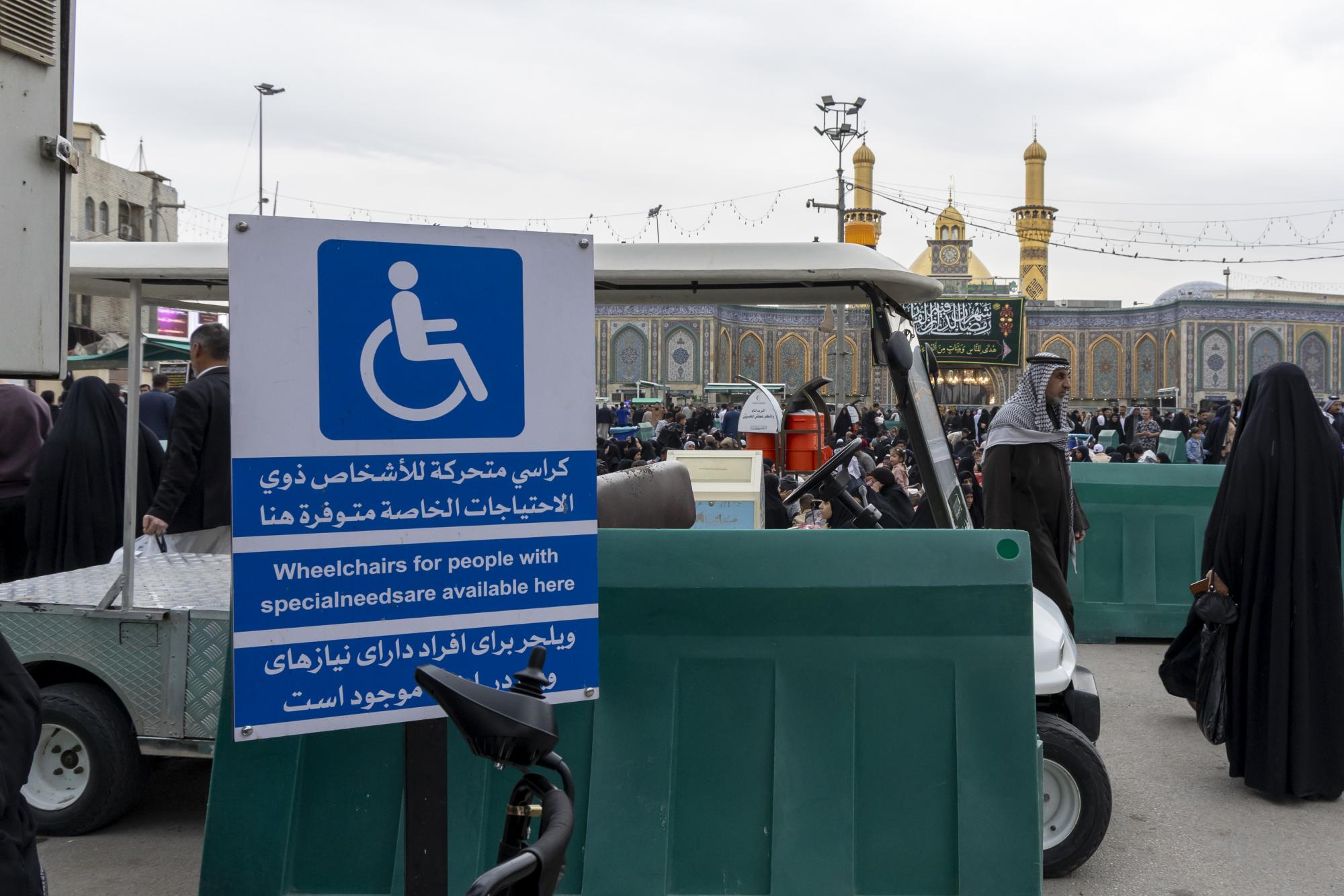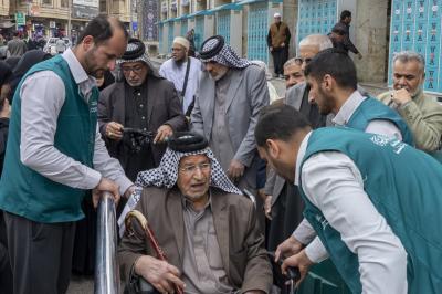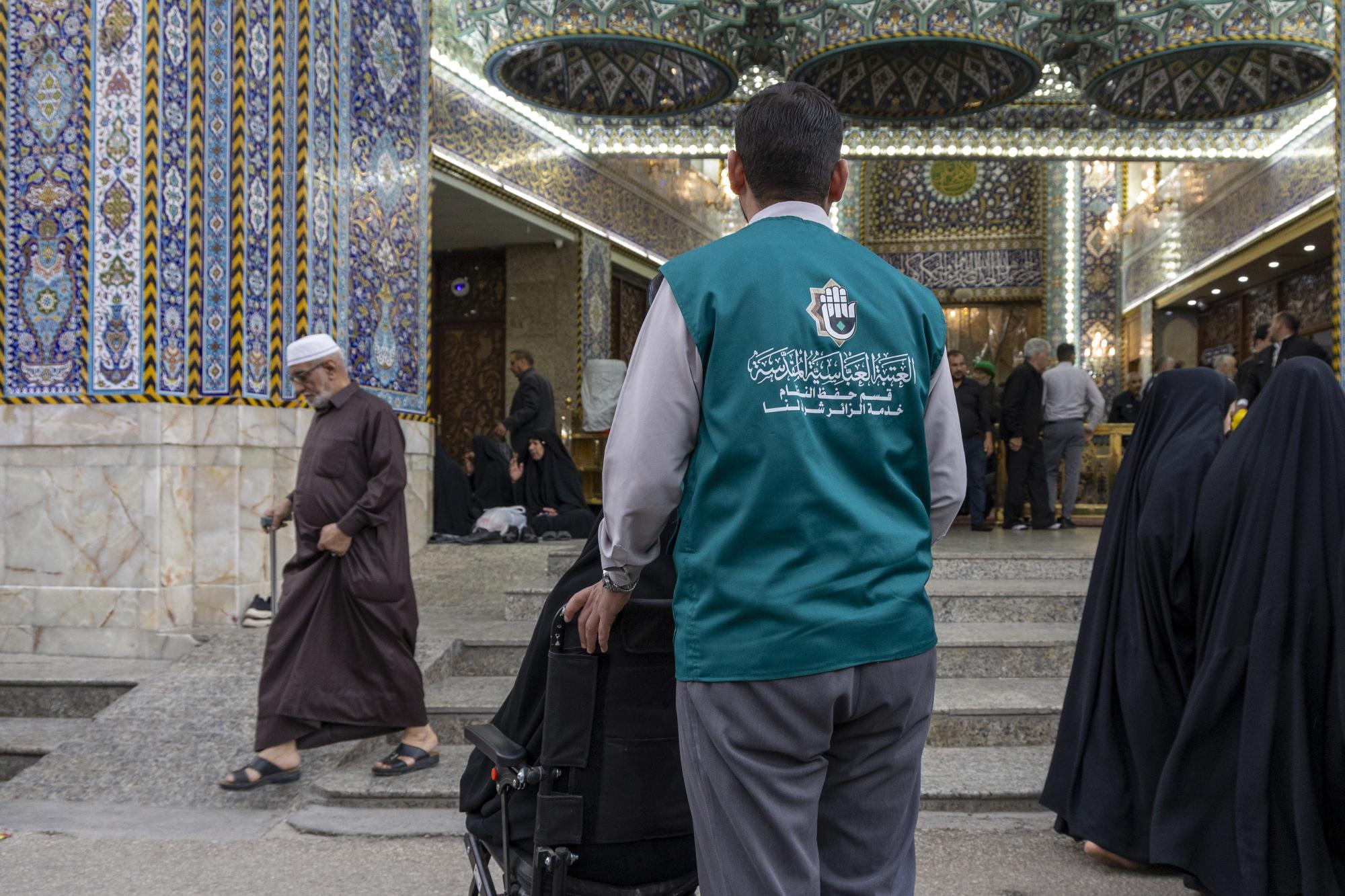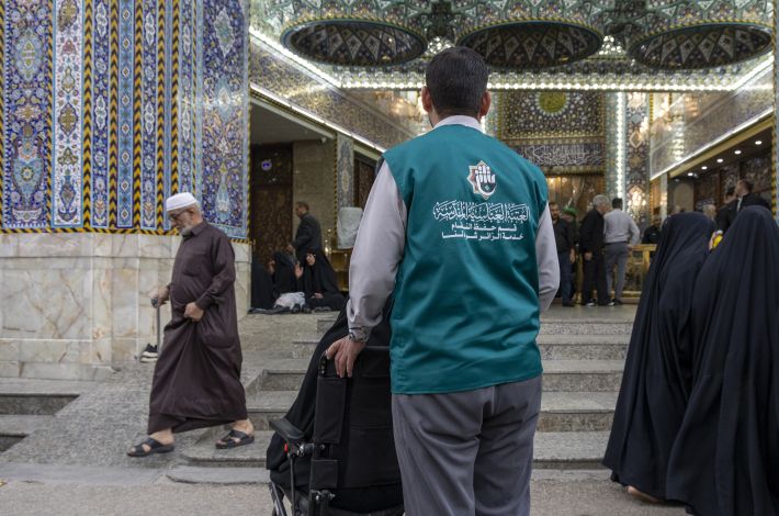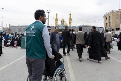 تقدم ملاكات قسم حفظ النظام في العتبة العباسية المقدسة خدماتها لذوي الاحتياجات الخاصة لتسهيل أدائهم لمراسم زيارة مرقد أبي الفضل العباس (عليه السلام).