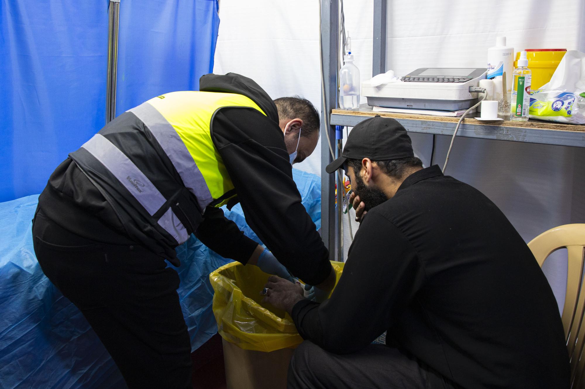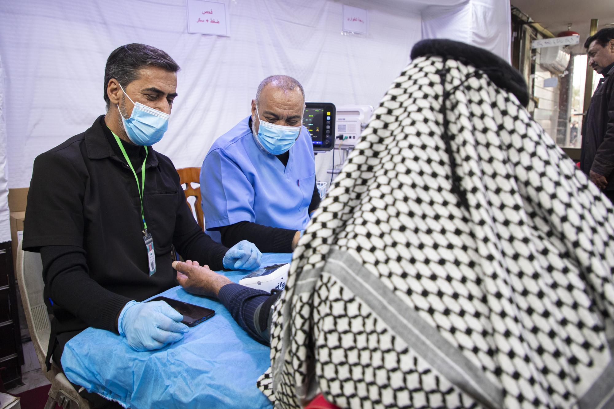 وأضافت أن "الخدمات المقدّمة تتضمّن إجراء الفحوصات الطبّية الأوّلية للزائرين، ومنها قياس ضغط الدم ونسبة السكّر في الدم، إلى جانب تقديم العلاجات اللّازمة للحالات المرضية المختلفة، والتعامل مع الحالات الطارئة وتقديم الإسعافات الأوّلية".