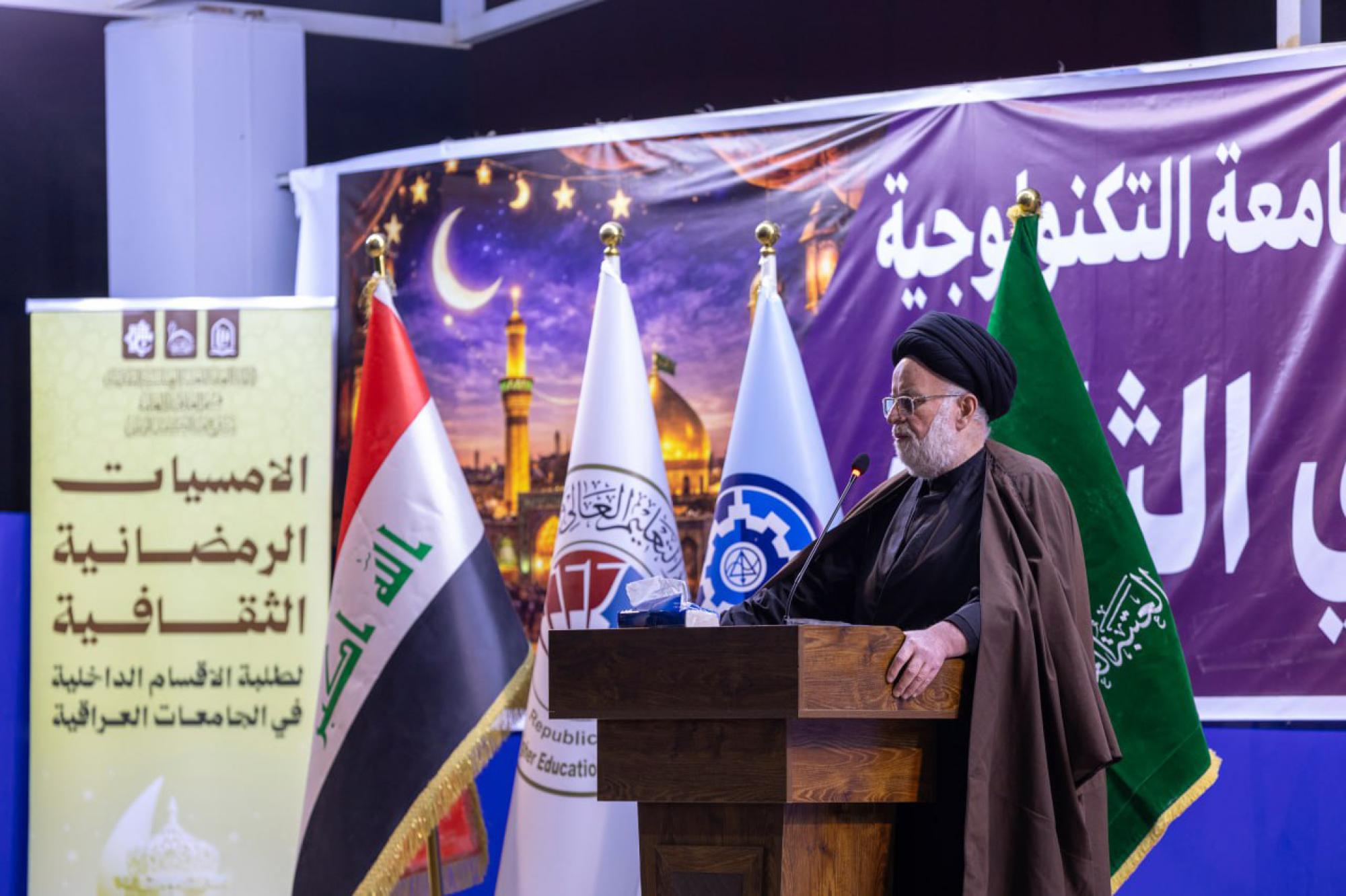 جاء ذلك في كلمة العتبة المقدسة التي ألقاها ممثلها السيد عدنان جلوخان الموسوي، ضمن فعاليات البرنامج الرمضاني الثقافي السنوي الثالث، الذي نظمته شعبة العلاقات الجامعية والمدرسية التابعة لقسم العلاقات العامة في العتبة المقدسة، ضمن مشروع فتية الكفيل الوطني، في الجامعة التكنولوجية بمحافظة بغداد.